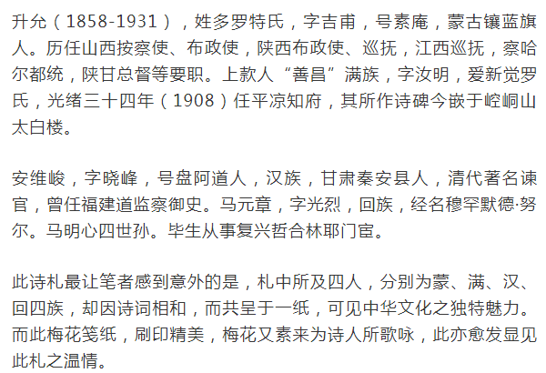 升允致善汝明兼简安晓峰、马光烈梅花诗札