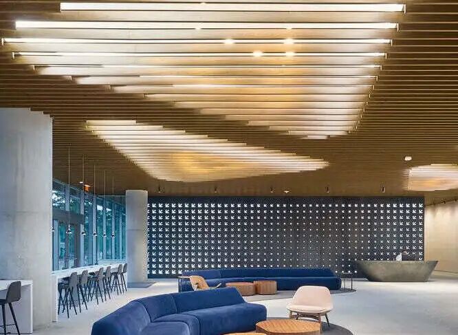 金属饰面,因其超高的可塑性,独特的材质质感以及优越的材料性能,渐渐成为公共空间吊顶装饰的“宠儿”!是提高空间差异性与时尚感的绝绝子!