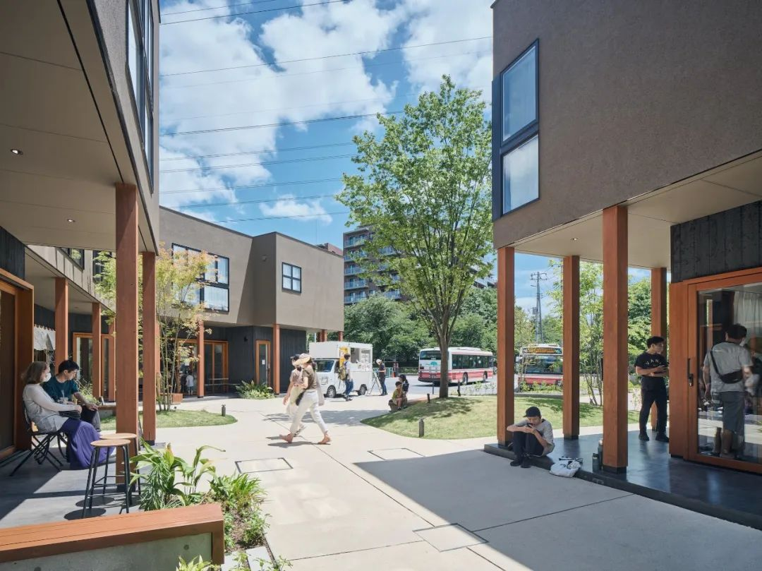 在本地人口老龄化和育儿双职工家庭流入并行的东京郊区住宅区中,老人越来越孤立,而双职工家庭少有机会参与当地社区交流。将住宅区的“巴士始发总站”作为社区互动的中心,在所有住宅单元入口处设可为个体经营所用的场所,创造了可以让居民们交流的场所。
