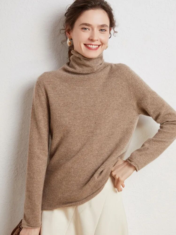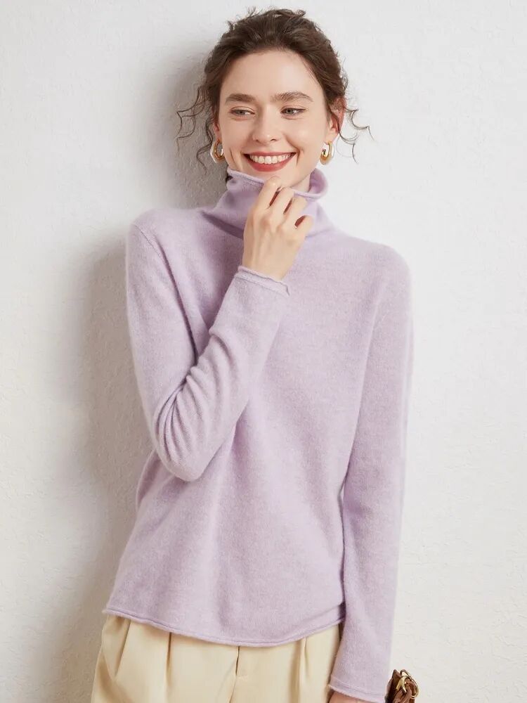 领口在脖间堆叠,大大降低了高领的约束性,领口位置特别开阔,穿着能显露出温暖又舒适的感觉。