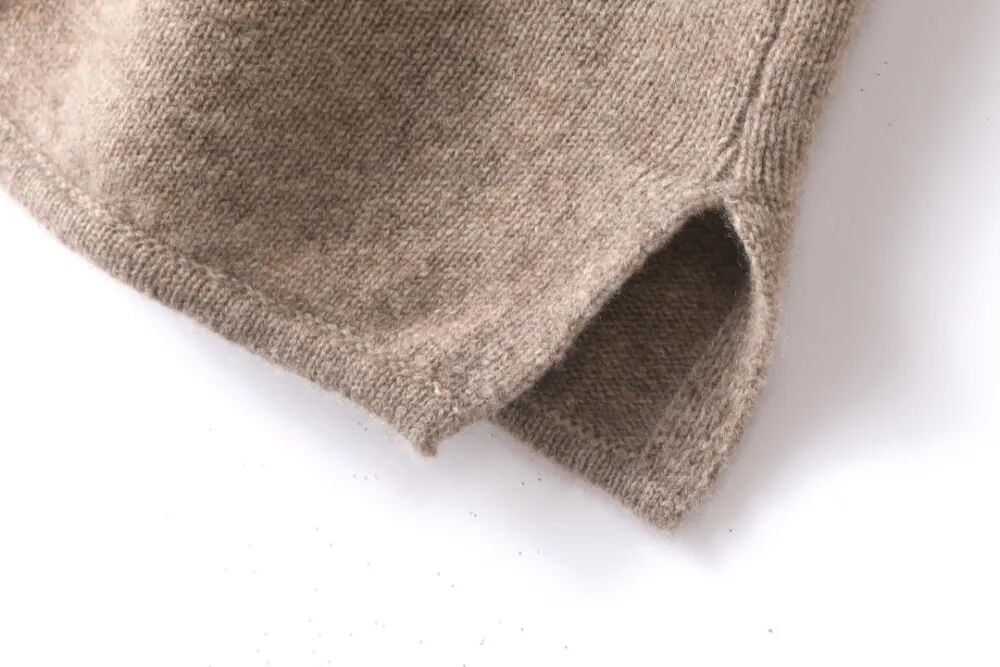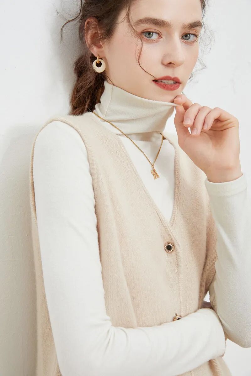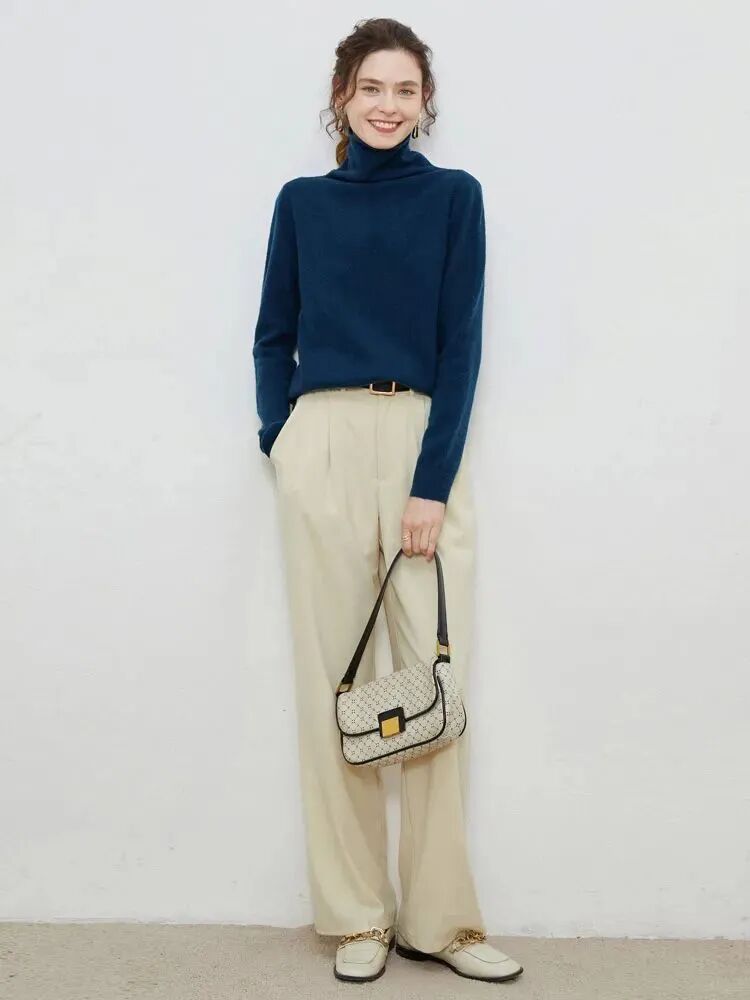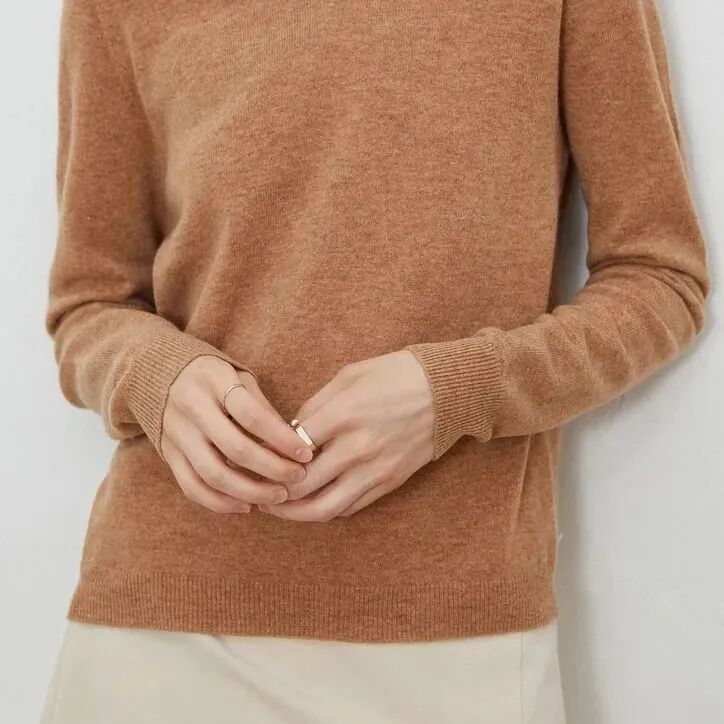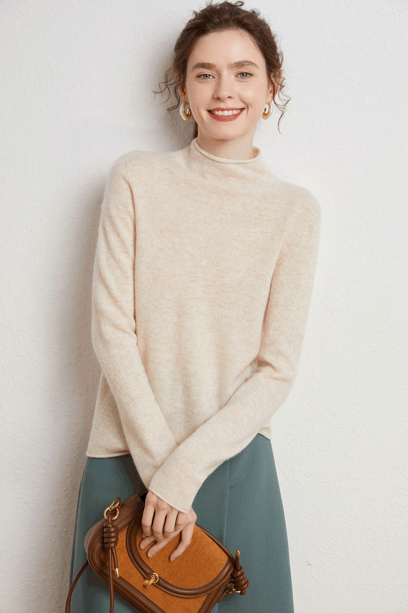 领口在脖间堆叠,大大降低了高领的约束性,领口位置特别开阔,穿着能显露出温暖又舒适的感觉。