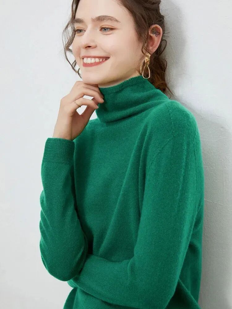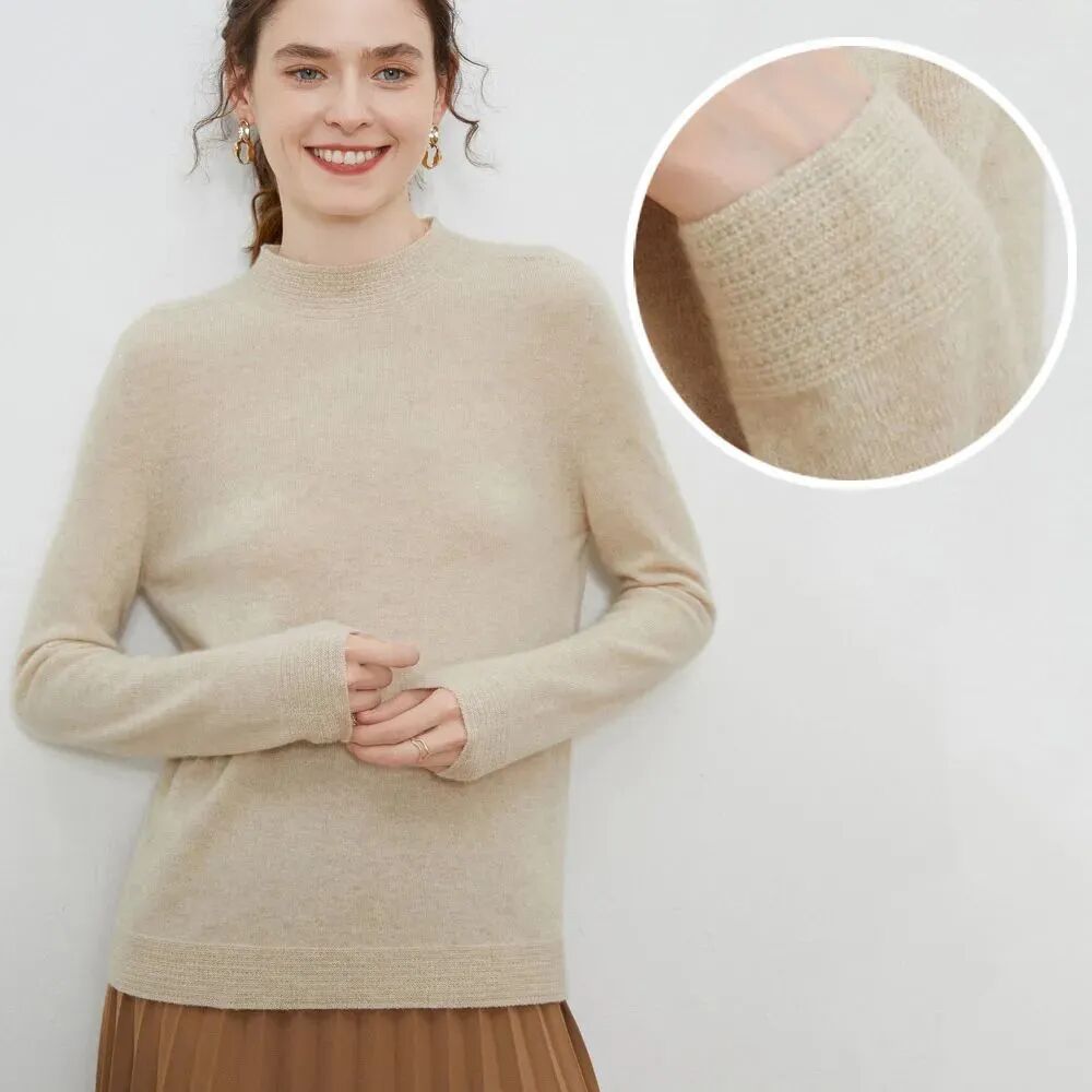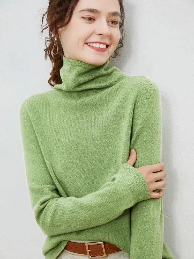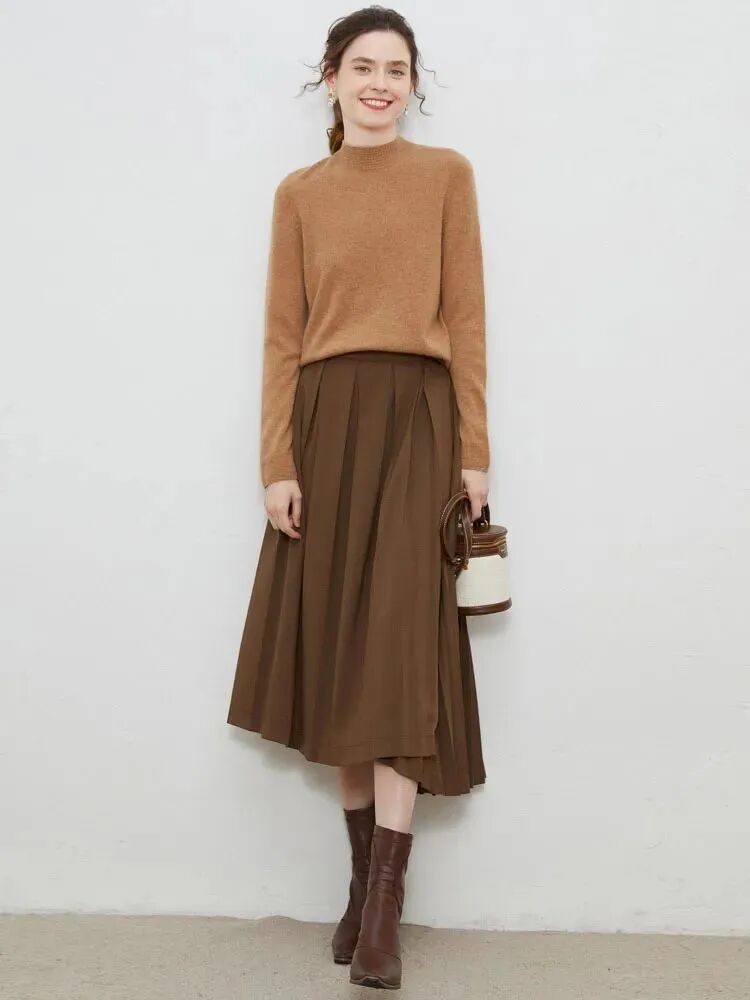 领口在脖间堆叠,大大降低了高领的约束性,领口位置特别开阔,穿着能显露出温暖又舒适的感觉。