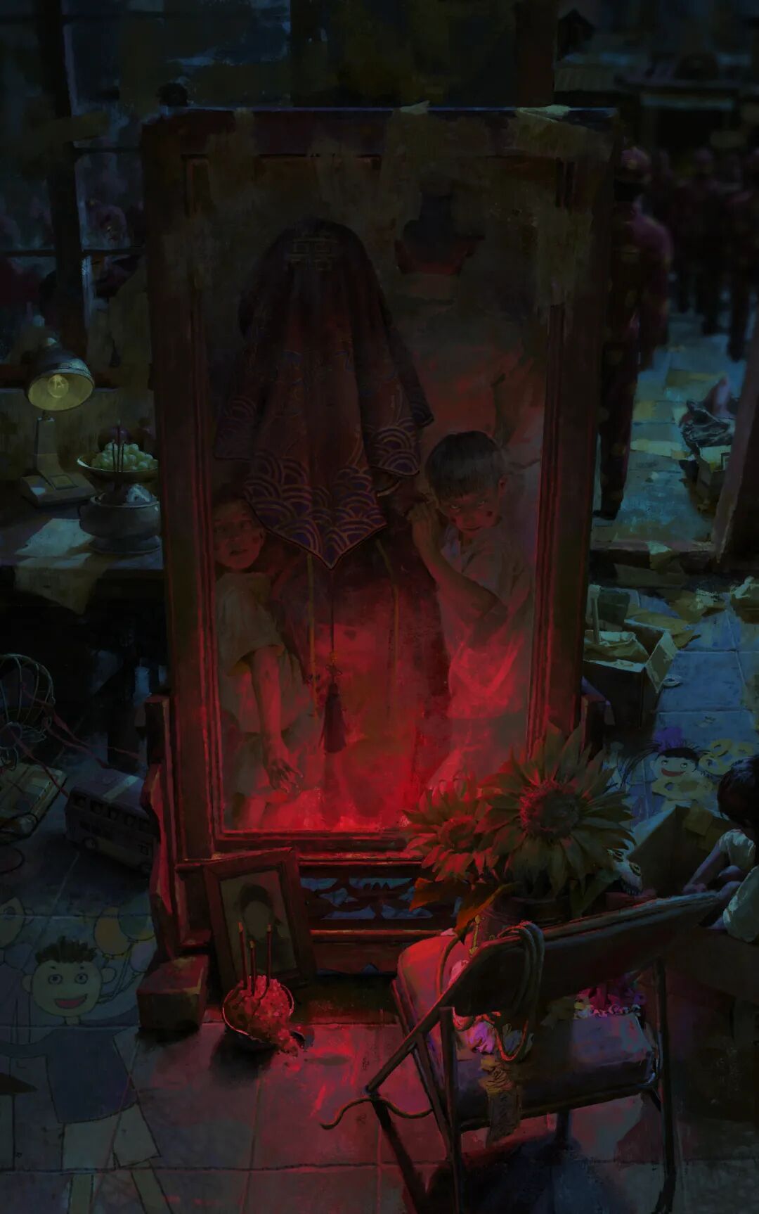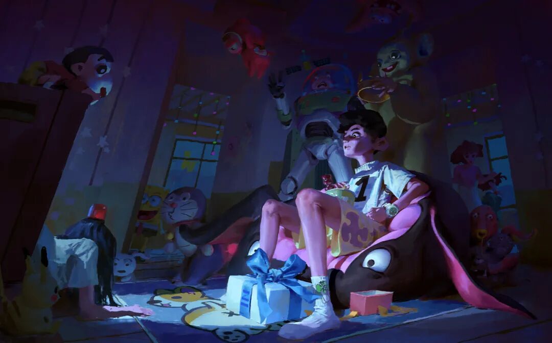 Insist是由广告平面设计,因此他也积累了很多非科班学习美术的经验。看过Insist作品的人,都无不惊叹于他的氛围营造能力,只需一眼就能代入到他图里的氛围,而且细节拉满,画虽然恐怖但里面有许多讽刺且深刻的寓意,细品就能让人背后发凉,更多干货尽在本周六晚的直播!