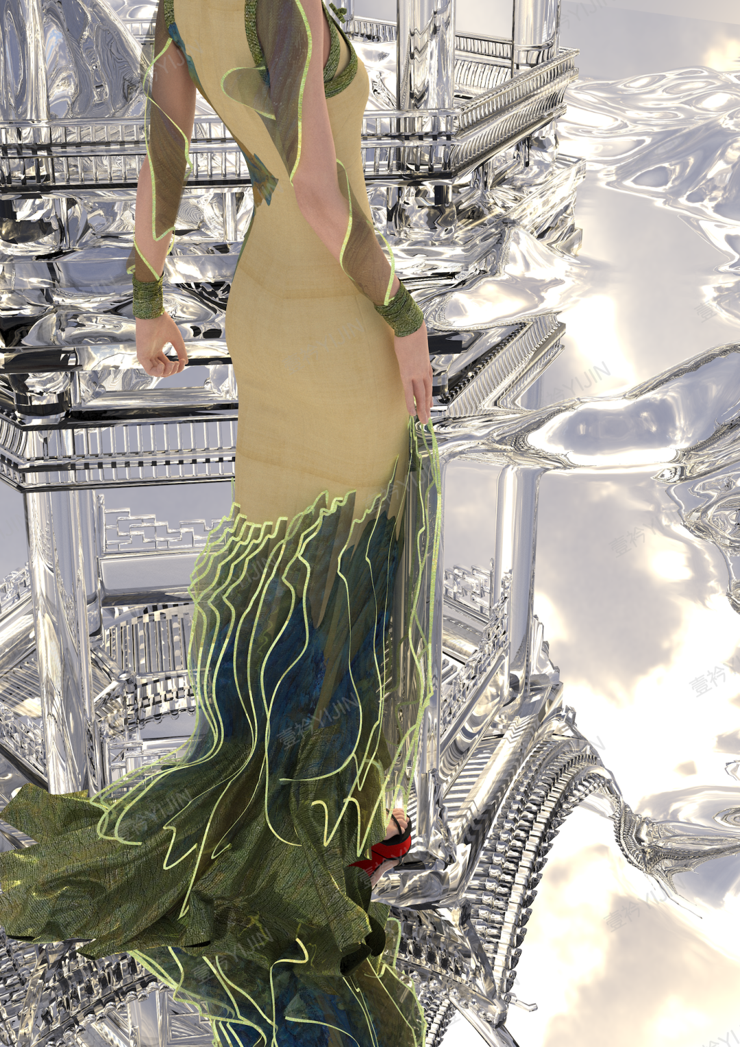 在初级课程基础上,侧重开发学员的创作潜能与思维开拓。通过新型案例实操,完成复杂款式虚拟时装设计。将CLO 3D创意服装缝制与场景模型建立结合运用,营造环境氛围感让服装展示更加多面化。