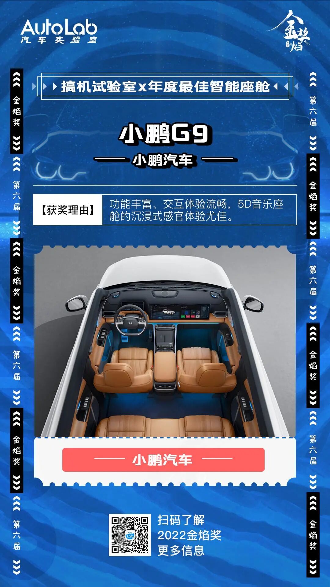 获奖理由:小鹏G9的全智能座舱Xmart OS 4.0,整体功能丰富,交互体验的流畅度、易用性都极为优秀,再加上豪华宽敞的驾乘空间,5D音乐座舱的沉浸式感官体验,尤其是把硬件配置与软件功能进行打通,将座椅、氛围灯、空调、香氛系统与影音娱乐内容进行联动来实现的5D沉浸式座舱,再一次让智能电动汽车的智能化、舒适性享受提升了一个纬度。