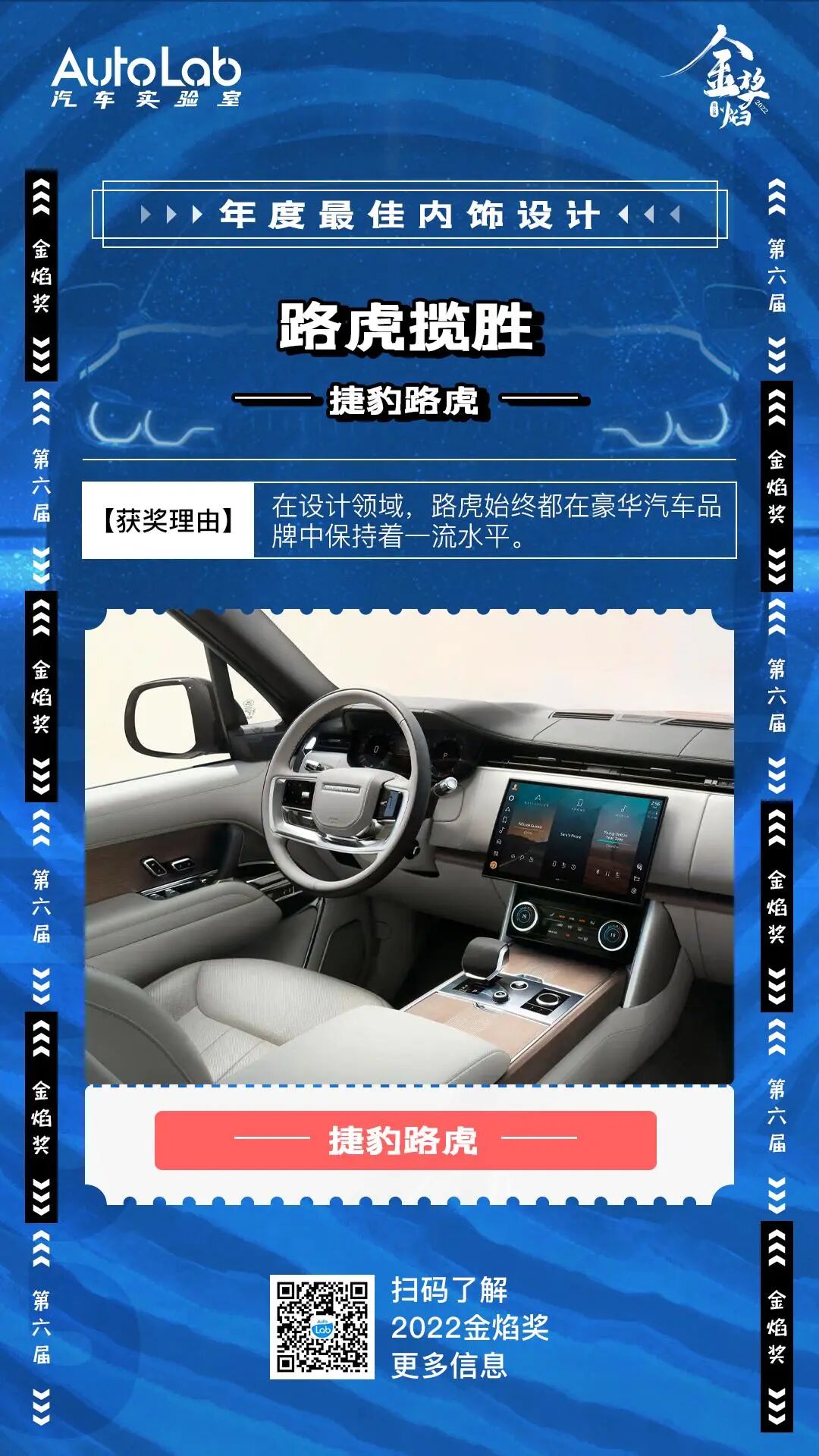 获奖理由:多年来,不管是外观设计还是内饰设计,路虎始终都在豪华汽车品牌中保持着一流水平。而在全新一代路虎揽胜身上,内饰设计依旧彰显豪华品牌的风范。