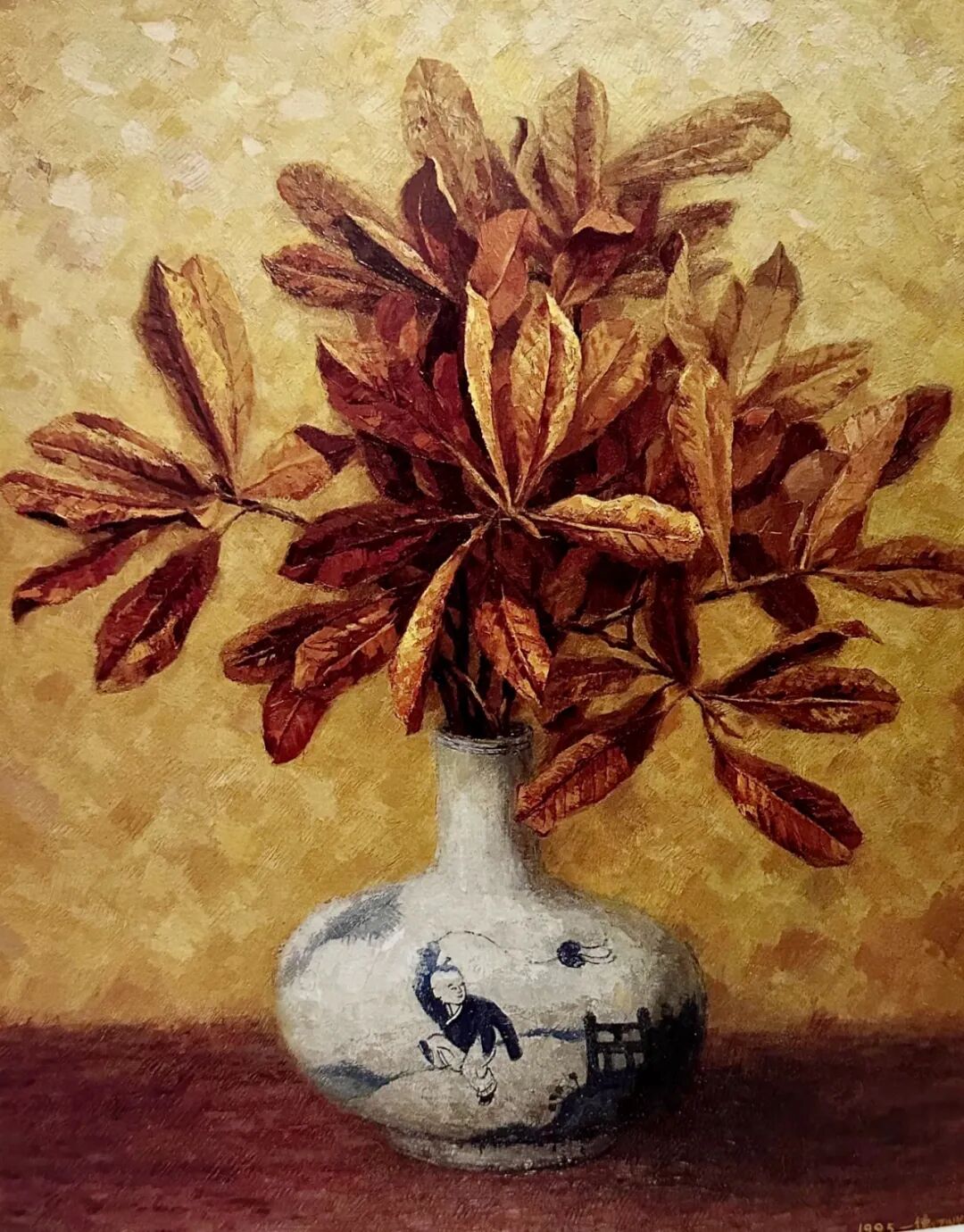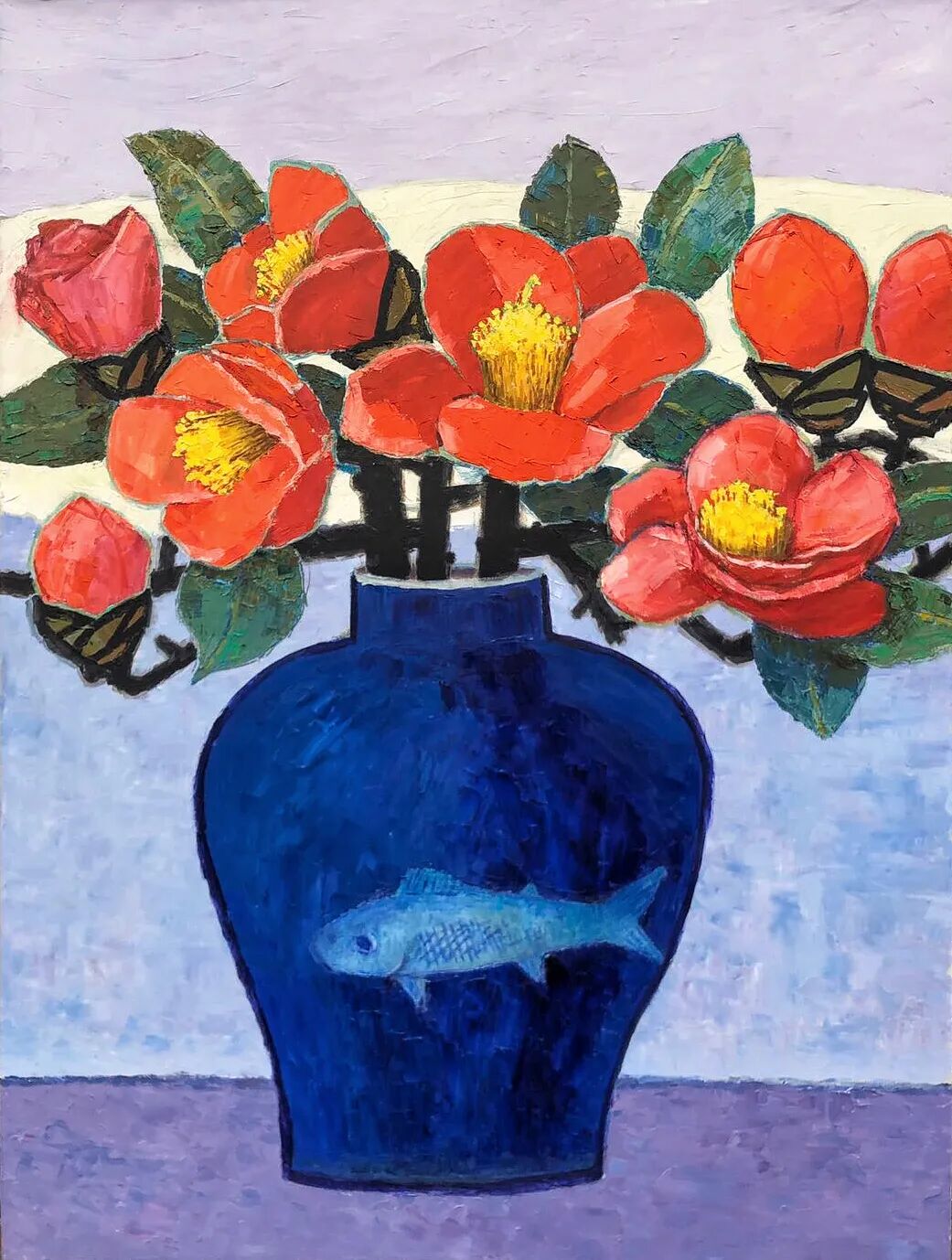 男性艺术家,中青年,安静,喜爱传统文化及古典艺术及音乐。用西方油画技法表达具有国画的东方韵味的静物,中国瓷器花瓶在画面中增加别样文化反差趣味,粗线条的花卉勾勒,具有装饰主义风格,色彩斑斓并且协调,具有视觉冲击力。具有中国文化的古典美与现代美的结合,中国画与西画的结合,有很好的西方画的功底。使用西方静物手法 ,将东方文化审美结合的新创作方式。请艺术家继续保持自己的表达方式 。