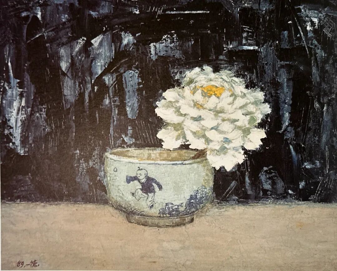 金一德  素色牡丹 50×61cm 布面油画 1989年