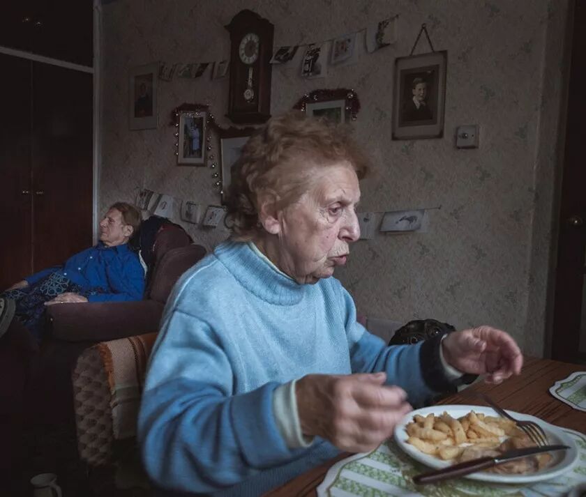 90岁的唐纳德是一名退伍军人,他独自坐在沙发上,丝毫没有意识到他的妻子——84岁的阿尔玛,正在几英尺外的地方吃饭。二战归来后,曾经善良、体贴的唐纳德患上了创伤后应激障碍,脾气一度变得暴躁、难以自控,以至于多年的婚姻暴力不断,濒临破裂。直到生命的最后几年,唐纳德被确诊为阿尔茨海默氏症患者,他的性情突然地发生了改变,恢复了年轻时的平和,重新变回了妻子心中那个曾经托付终生的男人。