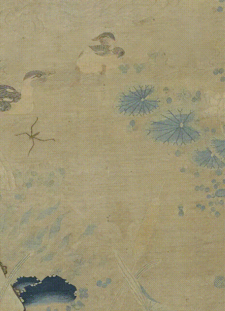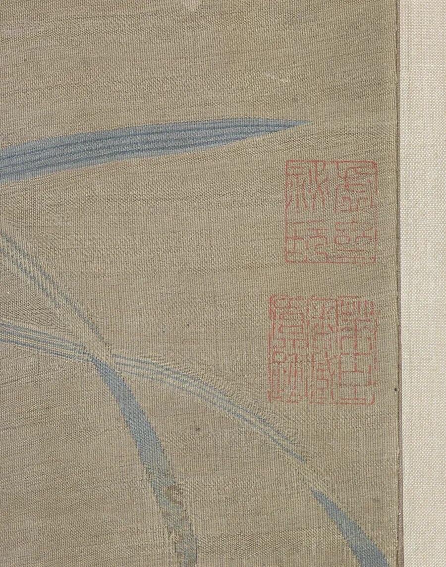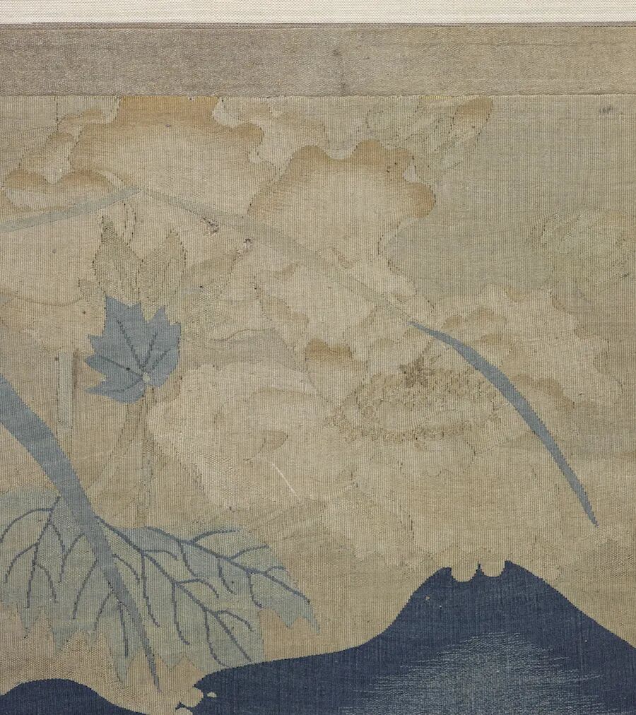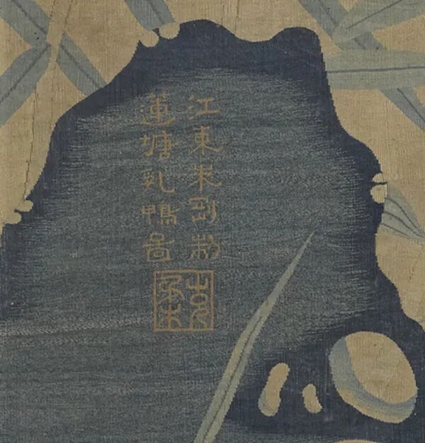 南宋  朱克柔缂丝《莲塘乳鸭图》湖石局部图
