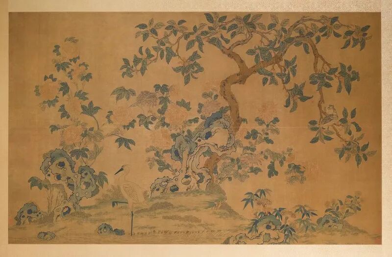 缂是一种通经回纬的纺织工艺,沿着古老的丝绸之路传入中原,故有“缂丝”之名。因其织作耗时费工,堪称“寸缂寸金”。受宋徽宗推崇的院体画影响,缂丝技法由唐时纹样图案主用平缂、勾缂技法,转向与绘画生趣和意境相融的多种戗缂技法方向发展,形成不同流派,南宋朱克柔便是其一代表。朱克柔融合院体画艺于缂丝技艺,以纤细的合色花线(合花线)作调色,以缂丝技法来摹画水墨笔意,晕色效果自然天成,精工细作,后世赞其名为“朱缂”。