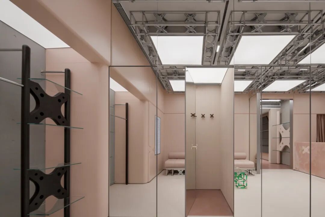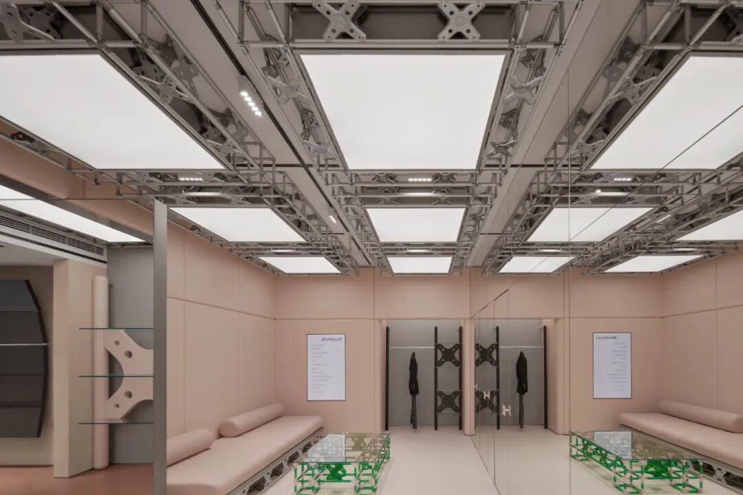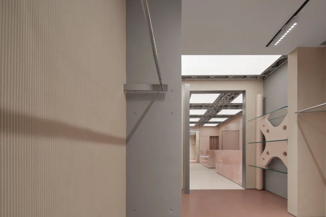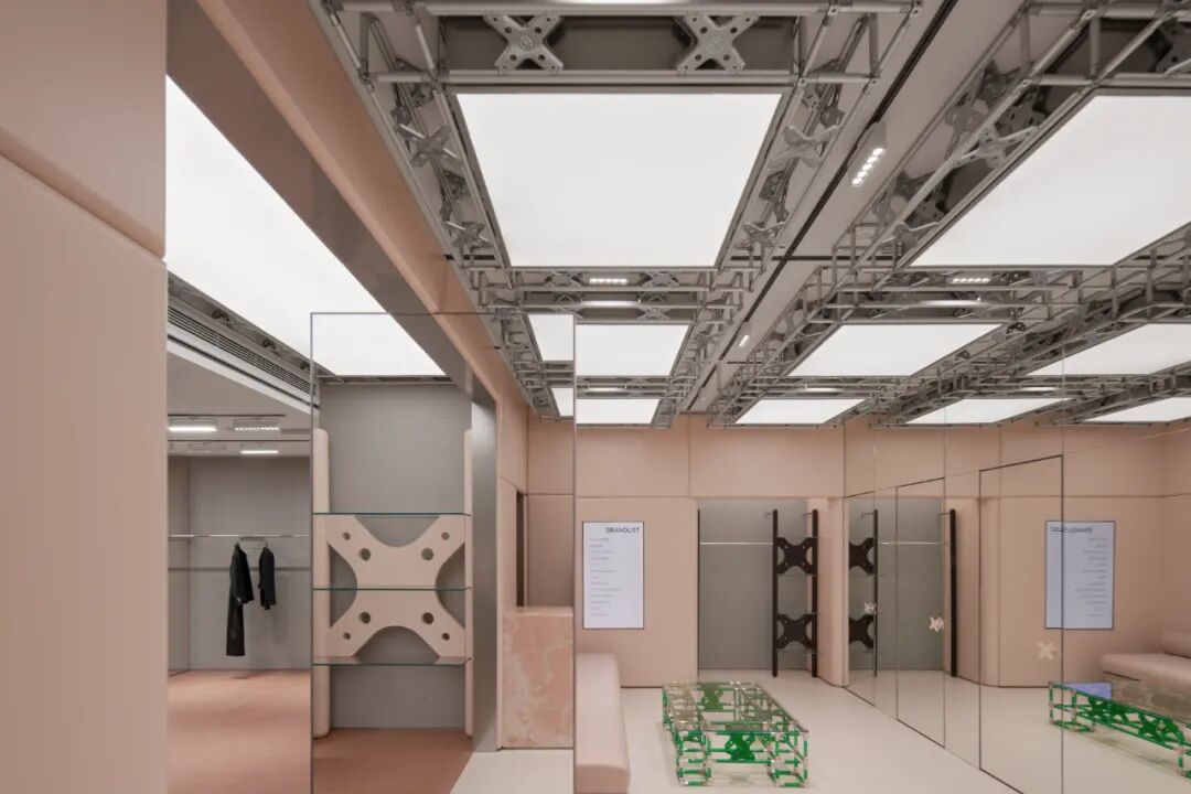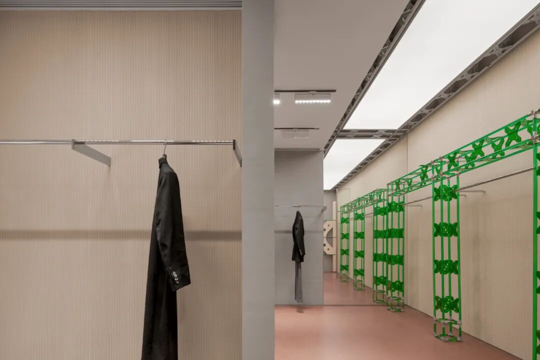 This is a new venture by a small boutique store, experimenting with the design of a compact low-ceilinged space. The site was originally a department store with limited vertical space, so we used varying ceiling heights to create distinct functional areas and to maintain an open spatial relationship. The space is divided into two zones: the front area, which serves as an outward-facing display area, and the back area, which is dedicated to internal services.