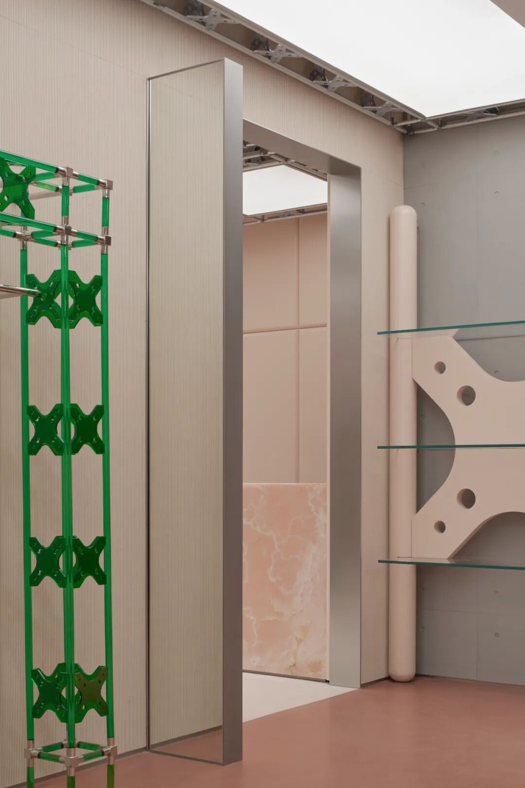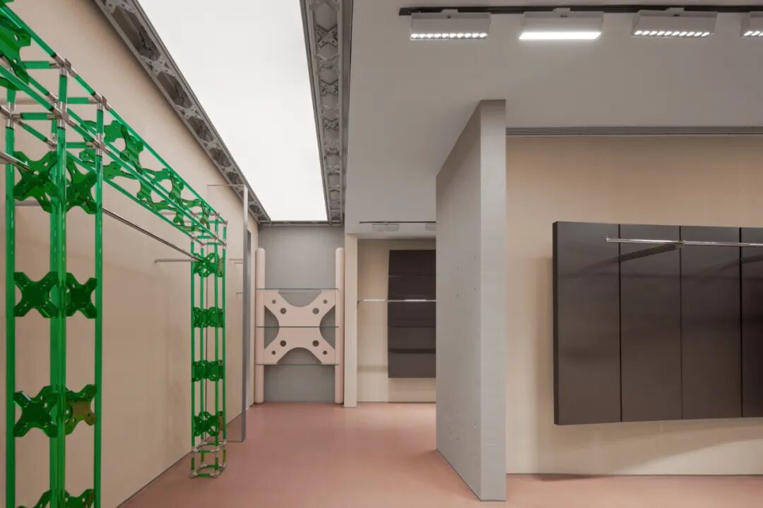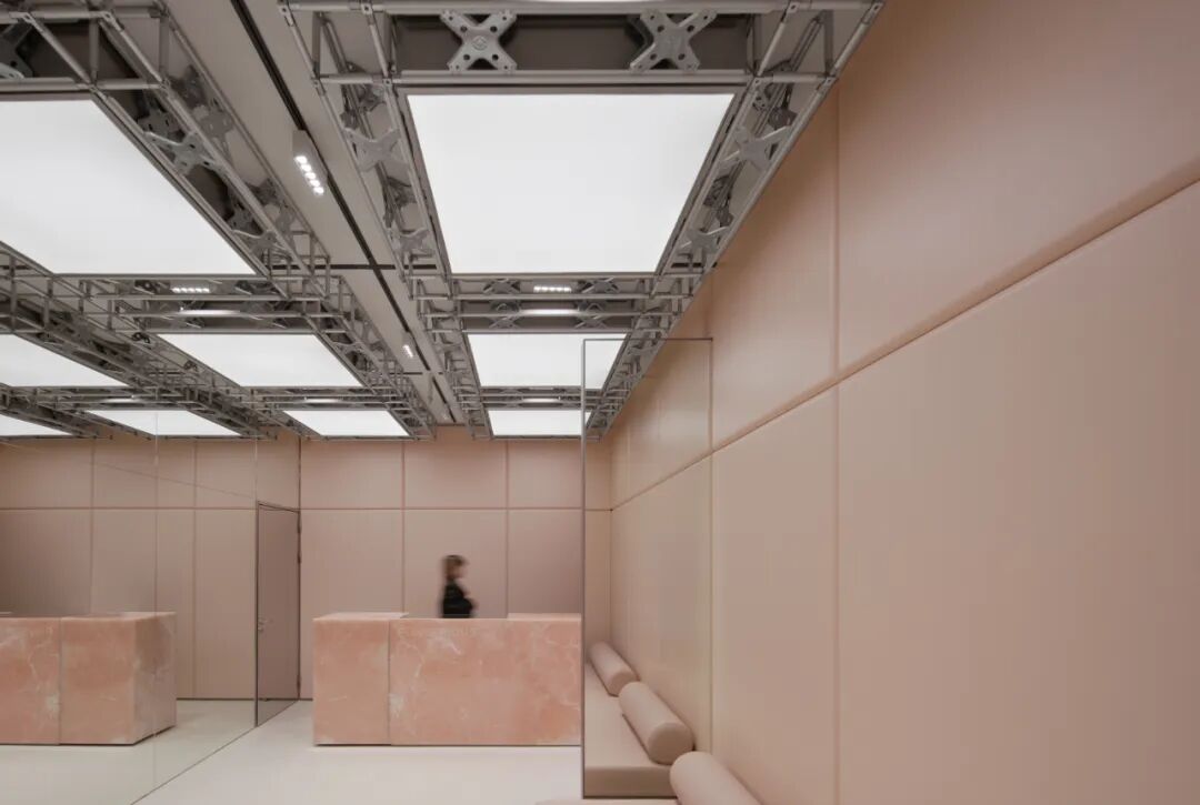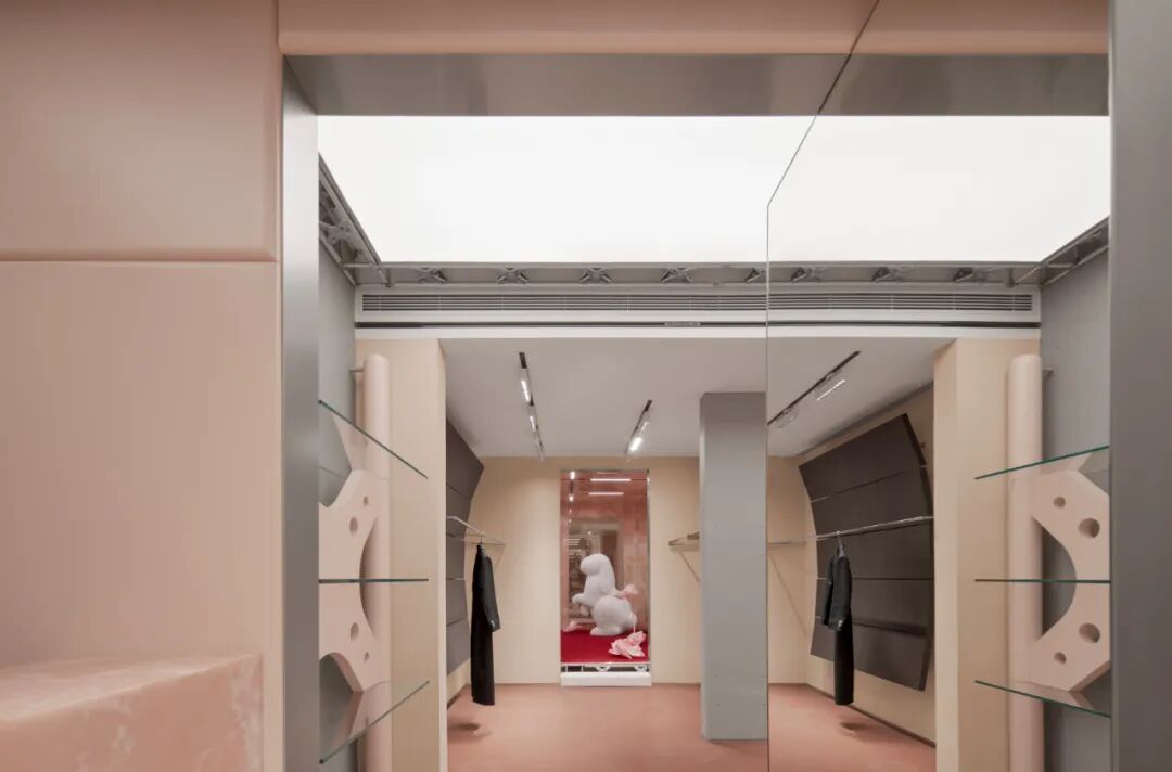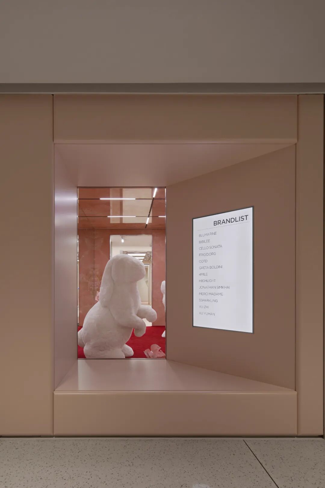 This is a new venture by a small boutique store, experimenting with the design of a compact low-ceilinged space. The site was originally a department store with limited vertical space, so we used varying ceiling heights to create distinct functional areas and to maintain an open spatial relationship. The space is divided into two zones: the front area, which serves as an outward-facing display area, and the back area, which is dedicated to internal services.