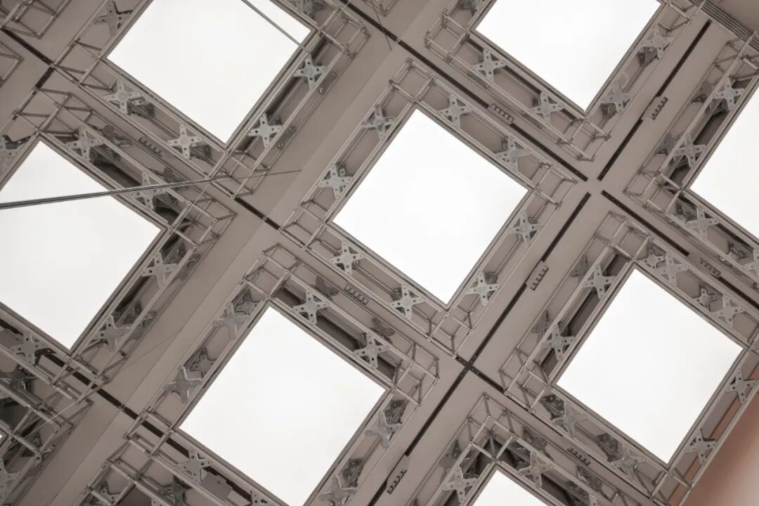 来自时间:蝶,潜藏蜕变,未来的世界微微颤动。如工业搭建的过程,时尚——是构建与演变。蝶形绗架作为一种普通的舞台搭建的材料单元,兼具多变与稳定的矛盾特性,而蝶形本身即充满了幻变的隐喻。