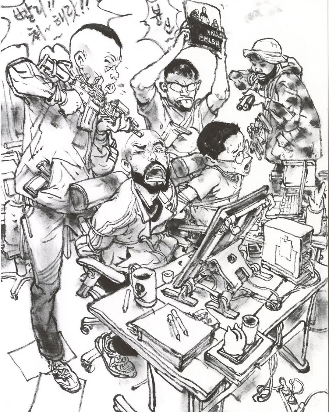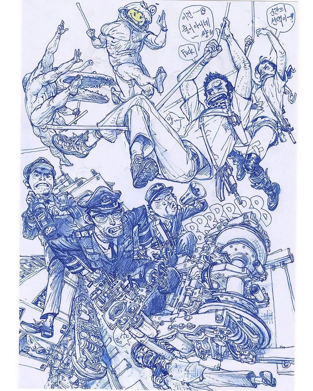 谈到创作作品的灵感来源,金政基说:“平时主要从众多的影像和书本中,还有经历的事情中努力寻找灵感,比较喜欢军旅生活,表现丰富的人体,机械类,以及动物类的题材。”