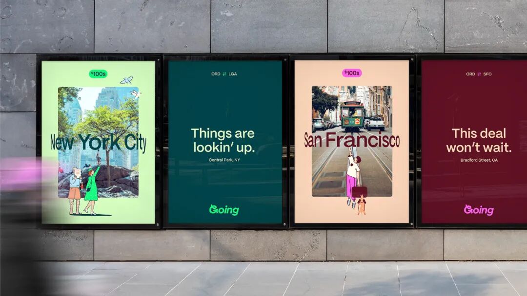 Going成立于2015年,名为Scott‘s Cheap Flights,是一项电子邮件订阅服务,为国际和国内(美国)目的地发送航班交易信息(目前仅适用于源自美国的航班),这项服务最初是给朋友和家人的电子邮件列表,现在已经发展成为一项服务,拥有200多万名成员和60多名员工,加上自己的软件,可以发现航班交易,并将机票误扣高达90%。成长为一个网站、搜索引擎、时事通讯,并很快推出应用程序,而且已经超越了斯科特,超越了最初的“廉价航班”主张,Going上周推出了新名称,并推出了由DesignStudio设计的新身份。