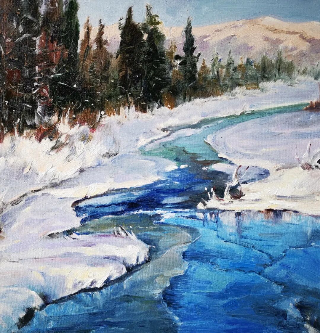 自然情怀的蕴藉,同样也可以说是吴仲刚先生今日缔造油画格调的另一基础所在。大量的自然风景,在吴仲刚先生的笔下可谓均是有得到了极强的视觉升华和美感呈现,并且每一幅画中的取景布局,也都是离不开他本人那有意识的画面经营,在河流淅川中斟酌意境,在雪景草林中构意写实,一切的画面质感,都无一不是有在引导着人们的视觉感受,并将其带入到吴仲刚先生那深厚的自然思索和精神之中。