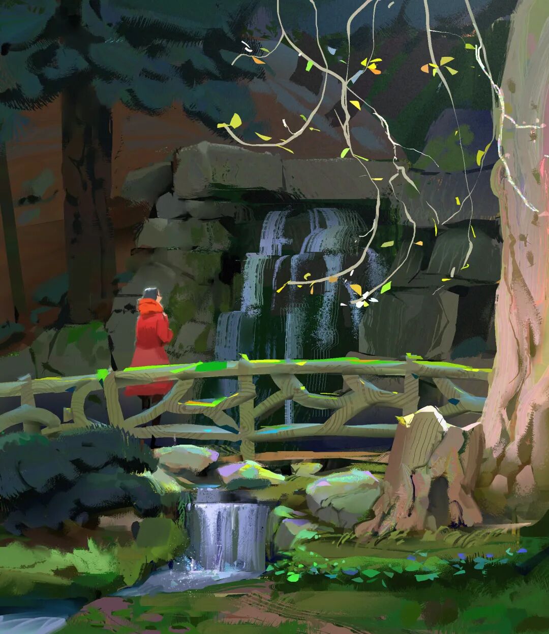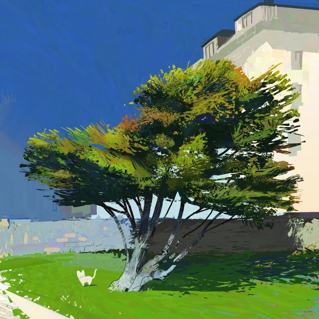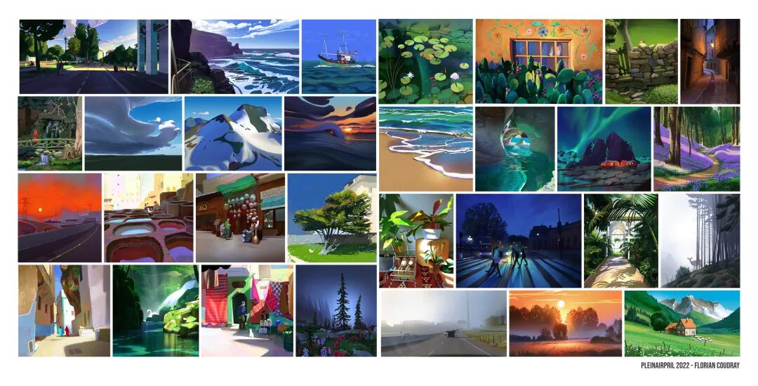 Florian Coudray此前曾参与场景绘画打卡活动,一天一张从未间断画足了30天。因为打卡期间他还有其他工作,所以日绘时间控制在了1-2小时,但每幅作品的光色和完成度都十分惊艳,干净清新,有着很强的概括性,质感非常不错。