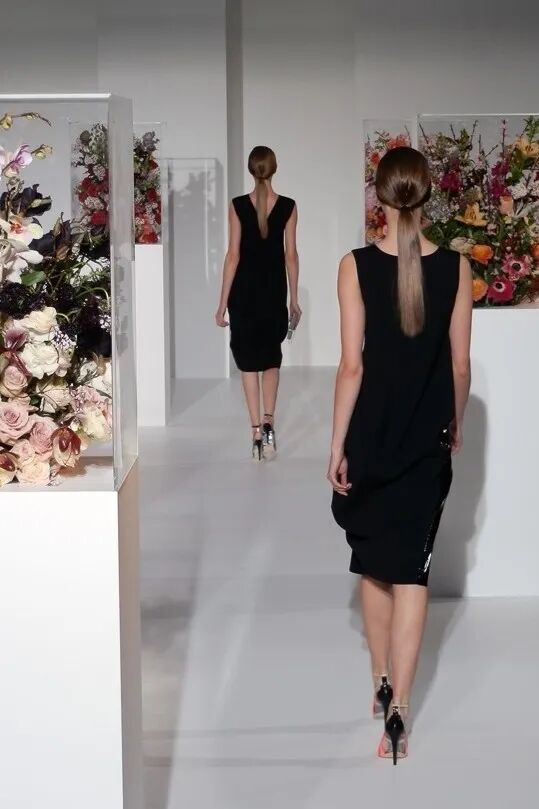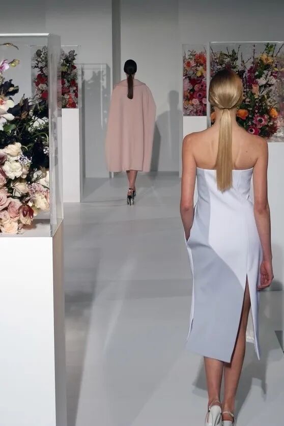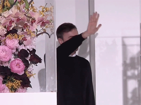 甚至这一季的鲜花装置也成为秀场设计的一个经典。安特卫普的花艺师Mark Colle为这一场秀创作,用象征女性脆弱一面的透明亚克力取代包装花束的报纸、花篮或者花瓶。他提前看了几个Look,看过了所有布料和颜色,他希望这些时装有“穿过”丛林的感觉。