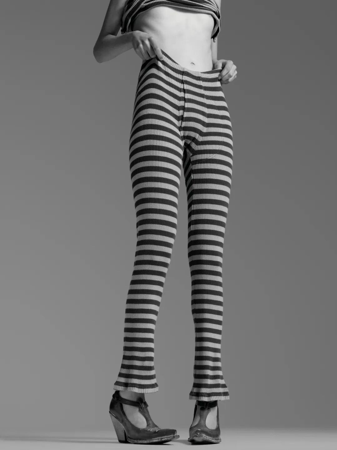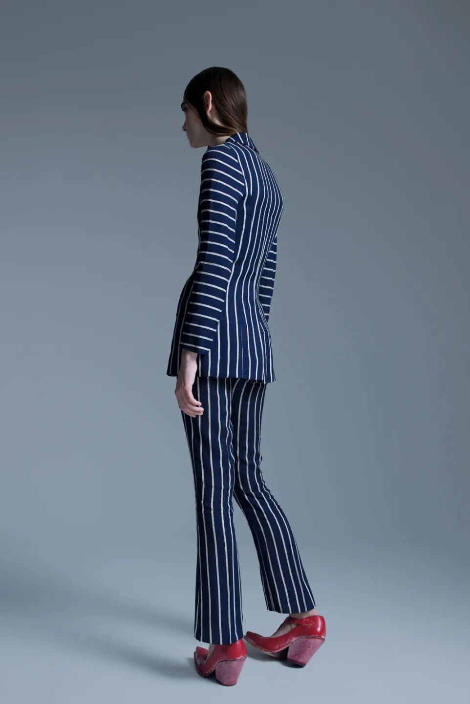 1965年的Biba条纹西装,搭配1989年Jean Paul Gaultier的系带高跟鞋。Jean Paul Gaultier 1989的系列也是相当有研究价值的了,光这一个系列就在1stdibs有一个单独的类目。