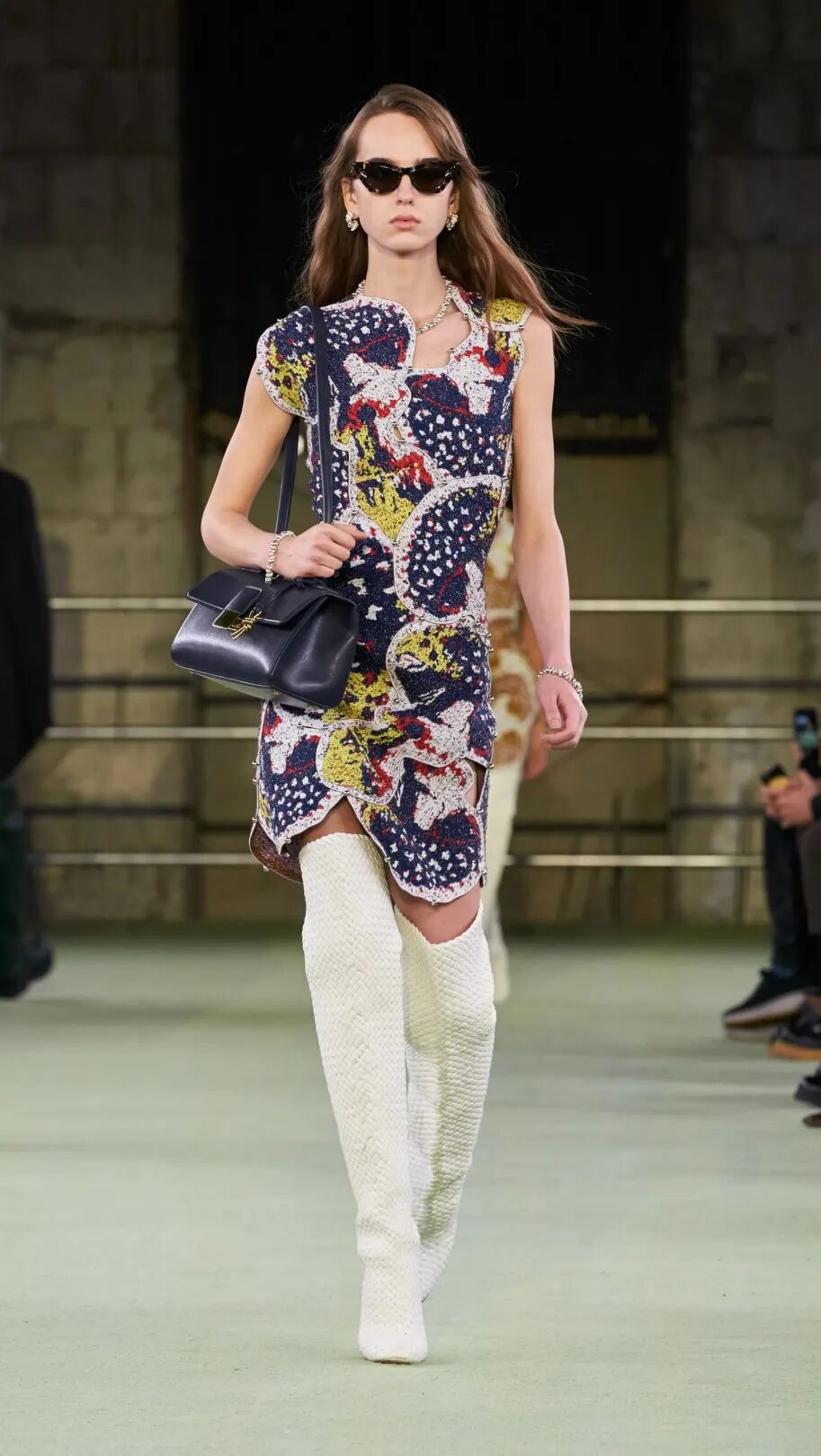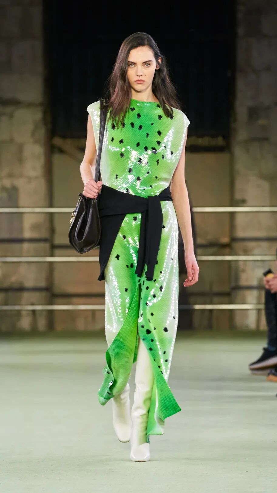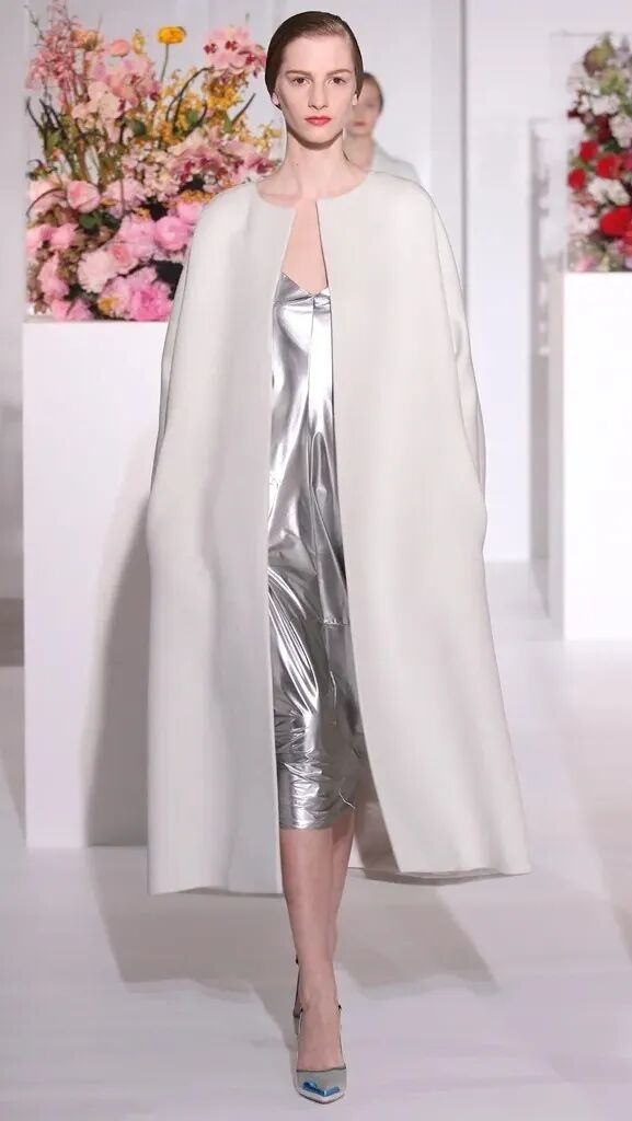 以上四个Looks已诠释出这季主题的一部分——“和恋人在一起时,一位女性舒展的一天”。所以有像浴袍一样的大衣、有性感的皮革、有大量裸色、有轻盈的像贴身睡衣的银色斜裁连衣裙……从早到晚、每种角色都演绎了出来。