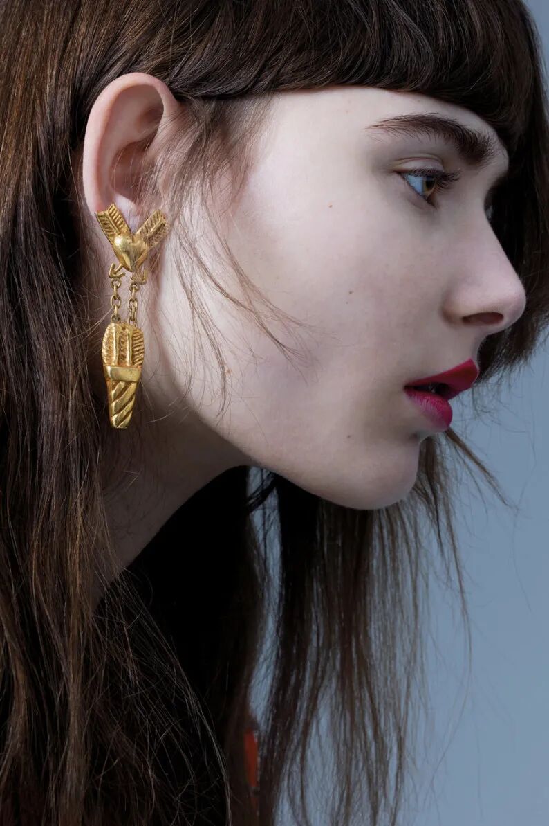 法国珠宝设计师Line Vautrin在1945年设计的耳环。Vautrin师从Elsa Schiaparelli,设计珠宝、盒子、皮带、镜子等等,后来还去大学里授课、跟博物馆合作。由于生意没有传下来,现在只有她的Vintage作品流传在各大拍卖行间。