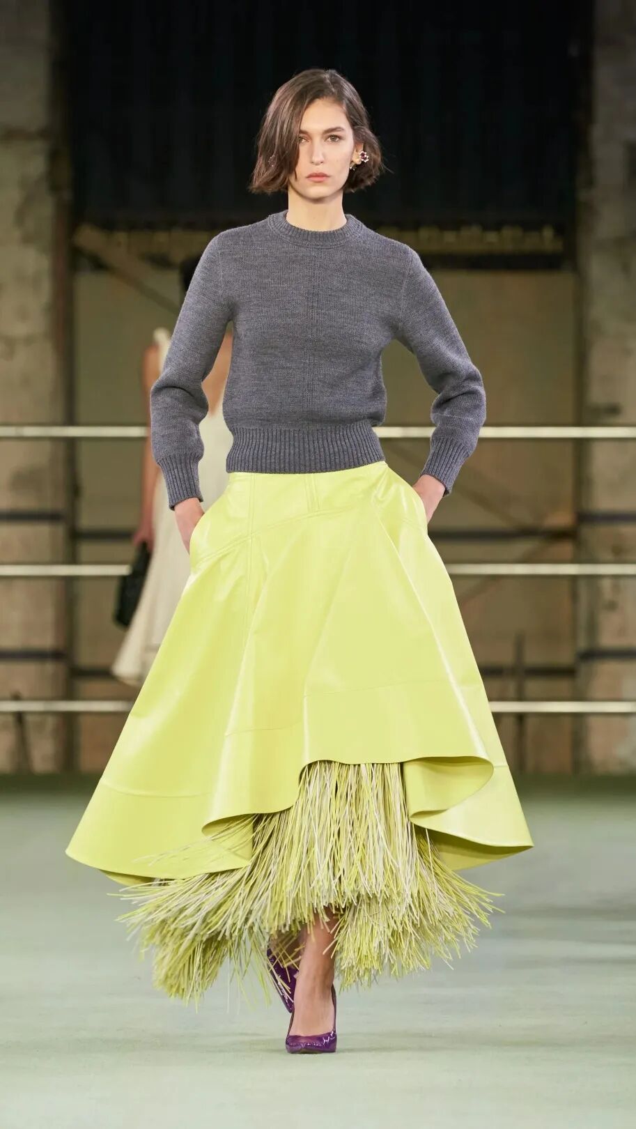 扯远了,继续说这一季Jil Sander有多精彩。首先,它重现了1987年Prada首个女装发布的手势,并且再次出现在2015年的Dior高定和2021年的Prada春夏。