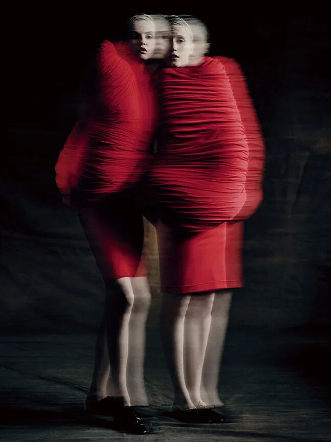 20年代的Lanvin,应该是两人最得意的藏品了。Pieter Mulier在接受采访时总不忘提及它们。左边这件为桑蚕丝日装,这个拍摄挺好玩——让人趴在一面玻璃上,裙子如同夹在书形成的书签;右边的晚装搭配了Maison Martin Margiela 1997春夏的高跟凉鞋。