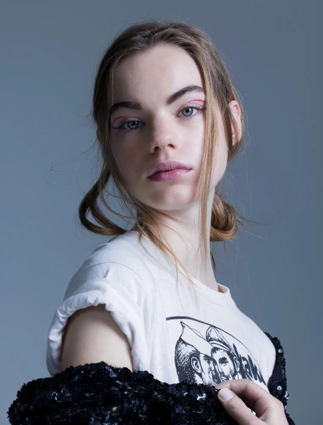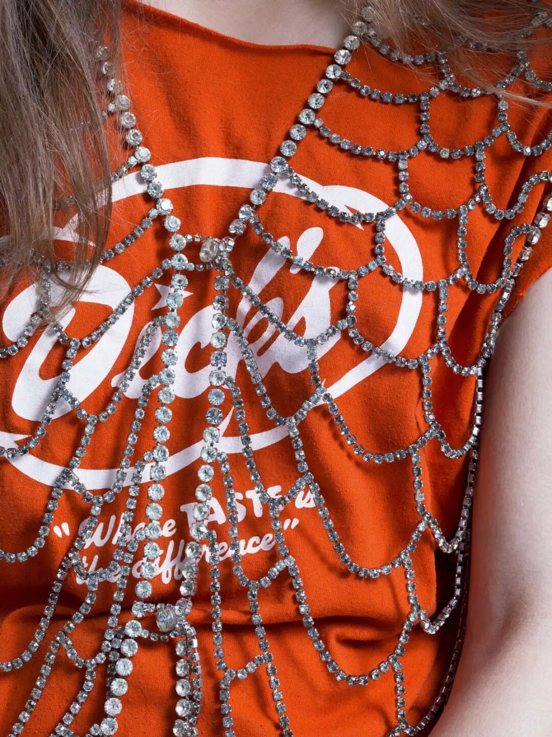 美国30年代脱衣舞女郎的水钻背心套在美国80年代的T恤外,搭配70年代Biba的玛丽珍鞋。伦敦鞋履品牌Biba低开高走再低走,也曾一度辉煌,后来因为股东斗得你死我活,现在已查无此人。