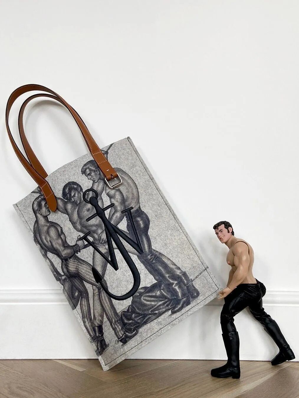 80年代芬兰艺术家Tom of Finland印花T恤,搭配50年代法国脱衣舞女郎的黑色刺绣裙装,品牌不详。Tom of Finland关心JW Anderson的应该不陌生,前两年才刚出过一个完整的Tom of Finland系列。(右)