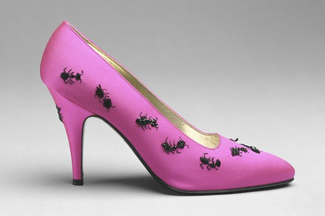 又是一个没怎么传承下来的设计师品牌,可是明明大都会博物馆都收藏了她1989年的一些作品,现在看有点儿Andy Warhol有点儿Elsa Schiaparelli甚至有点儿Damien Hirst,尤其是右边那个饰满昆虫的?