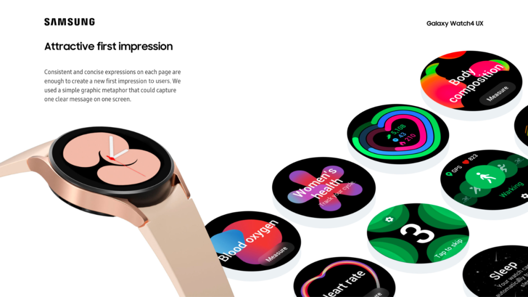 此外,针对圆形显示进行了优化的精美屏幕营造出愉悦的用户体验。增加身体成分和睡眠分析功能,让用户更好地保持健康。手表经过重新设计,允许更自然的交互,从而创造更方便和愉快的用户体验。