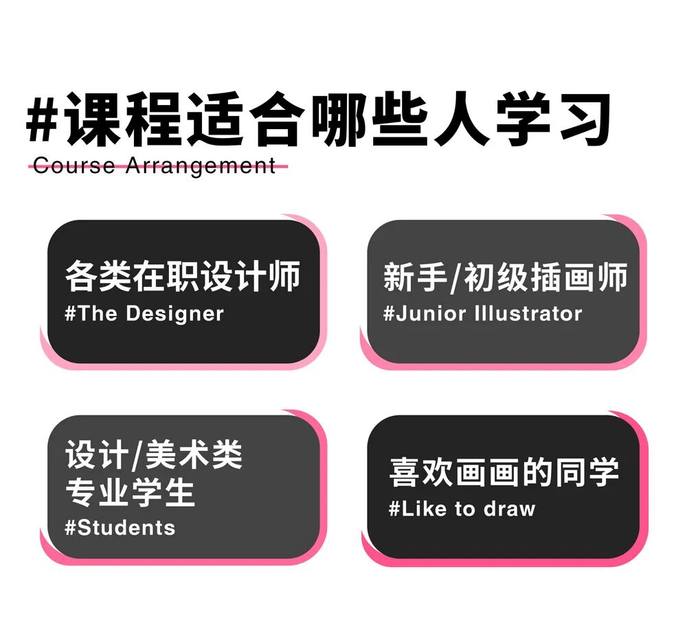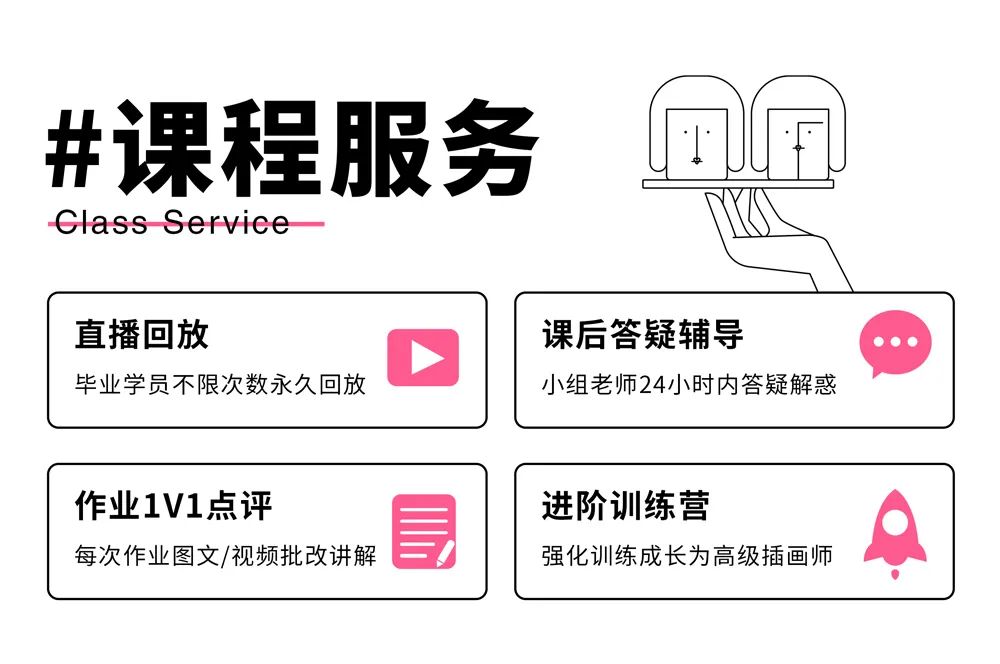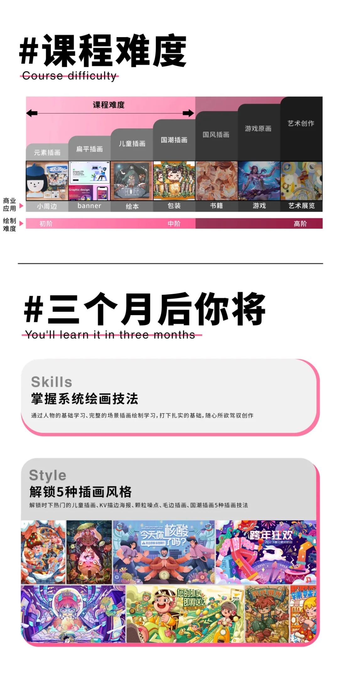 这些就是关于我插画课的全部内容。如果你也想报名学习,关于报名时间和流程、课程计划、学习费用的问题,你可以看下面进行了解:
