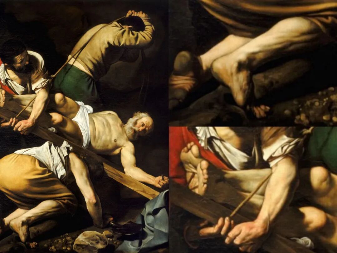 卡拉瓦乔的《圣彼得受难》是他描绘“脏脚”的几幅画作之一。