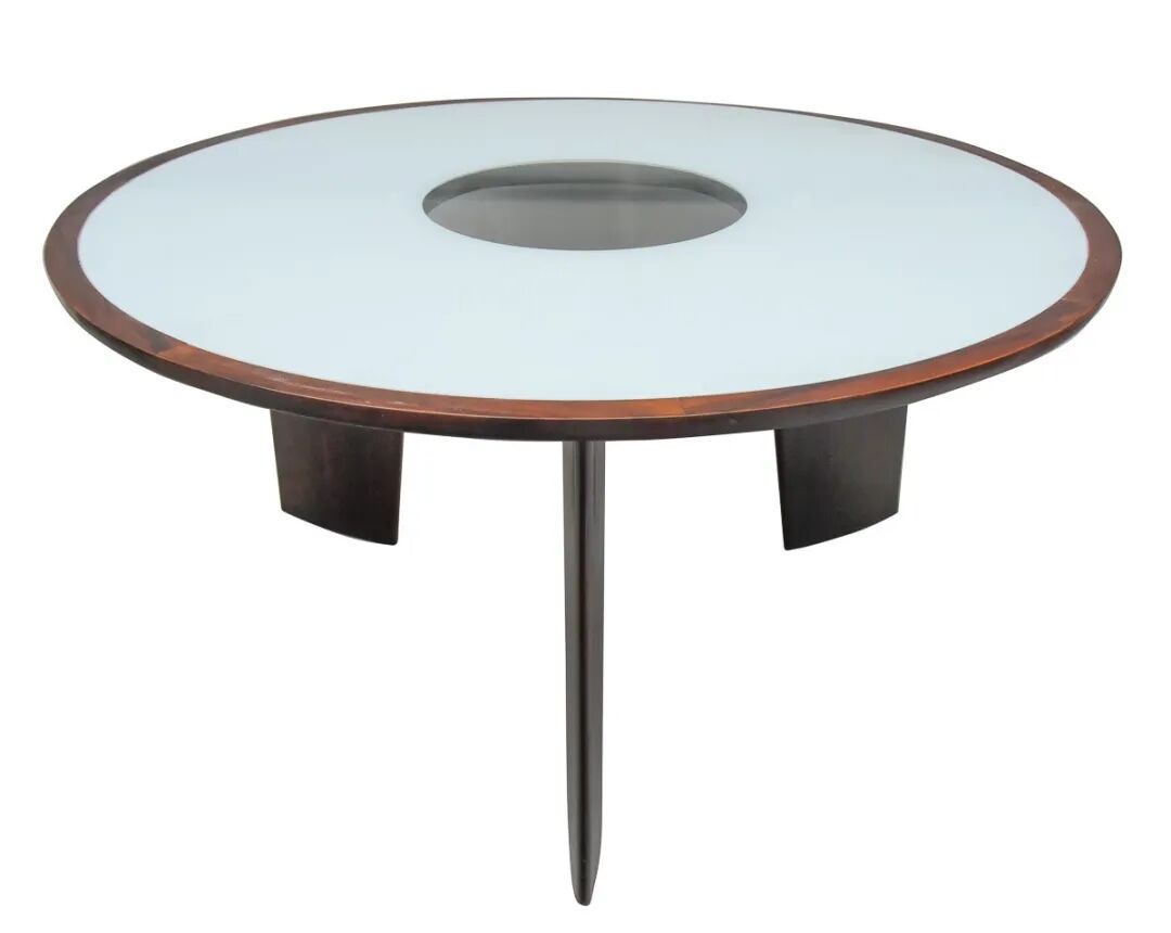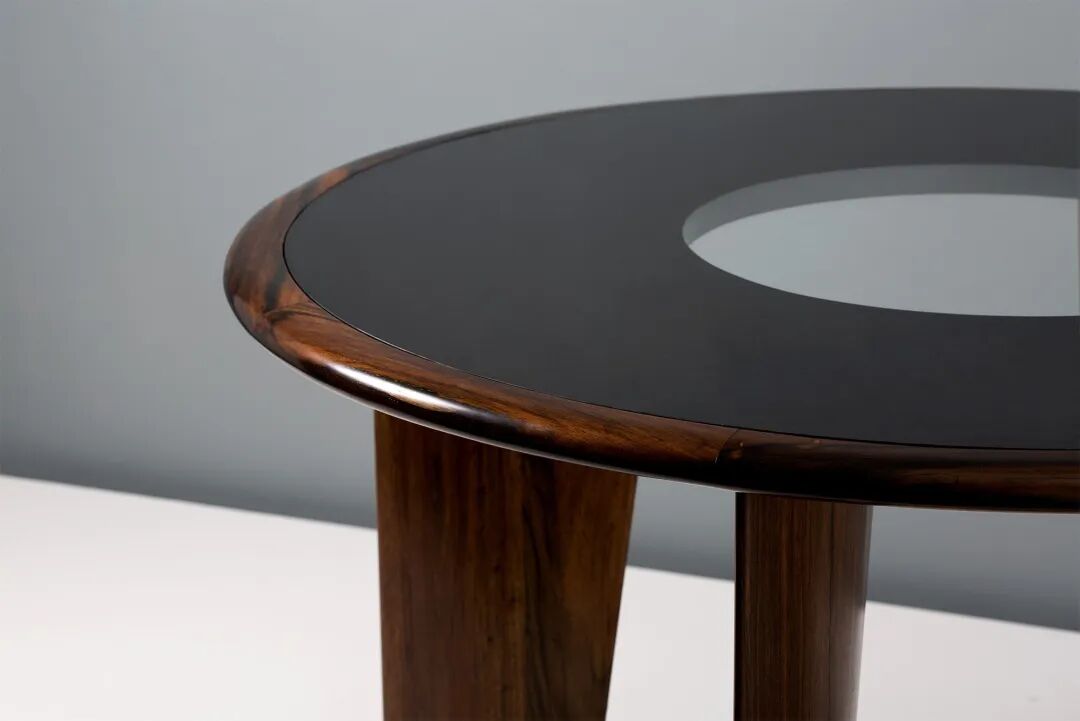 Joaquim Tenreiro (1906-1992) 是 20 世纪中叶巴西领先的家具设计师和视觉艺术家之一。他出生在葡萄牙梅洛的一个木工和木匠家庭。他的“Mesa Redonda”桌子反映了对木材的精湛技艺。这张圆形桌子于 1960 年代在蓝花楹(一种巴西红木)中制作而成,具有感性的曲线,没有硬角。