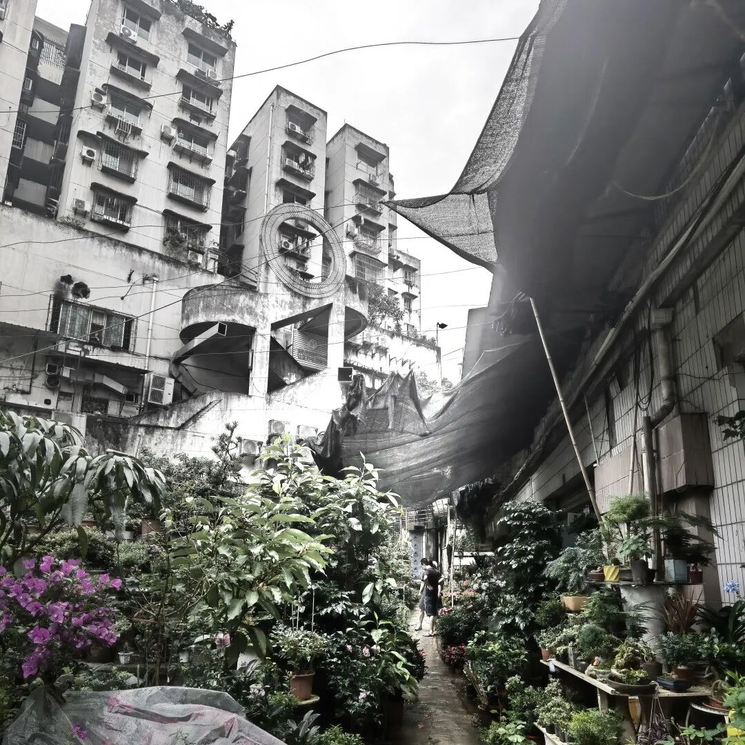 虽然只是由一个平凡的车库发展而来,这个重庆花市,实际上洋溢着山地建筑特有的迷幻气质。