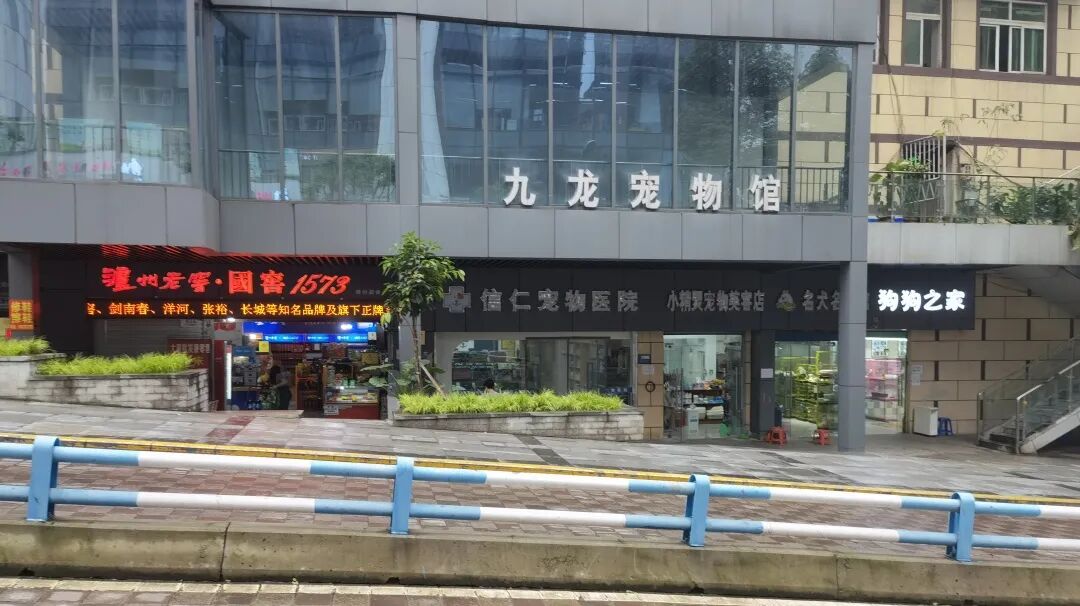 从地图软件提供的官方入口面看,这里有两个牌牌,一个是“九龙花鸟城”,另一个还是“九龙花鸟城”,唯一的区别是个头大的“九龙花鸟城”牌牌对应的门,在路面标高以上1米左右,为了防止人从道路交口处路面进入,贴心地为这个1m的平台上安装了1m的围栏——让我知道了正门应该是小牌牌下面的口。