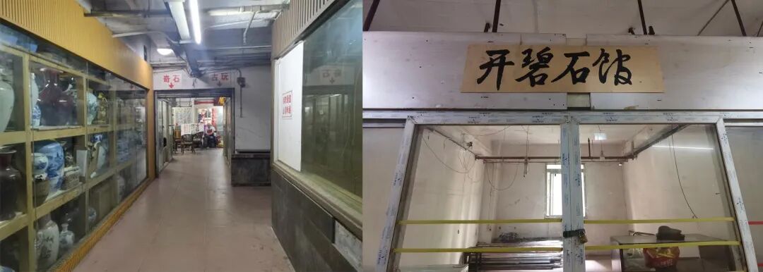 沿最冷清的道路深处走,才是金石古玩的领地。每家石头/古玩店面都坐拥一个面宽三四米的小单间,每个单间配有一扇窗户用来通风——窗户大多会被老板用窗帘/报纸遮裆,毕竟老东西见不得光。