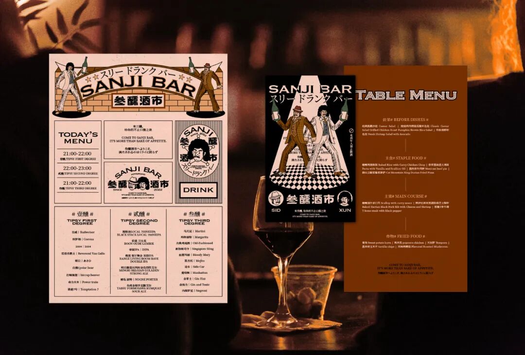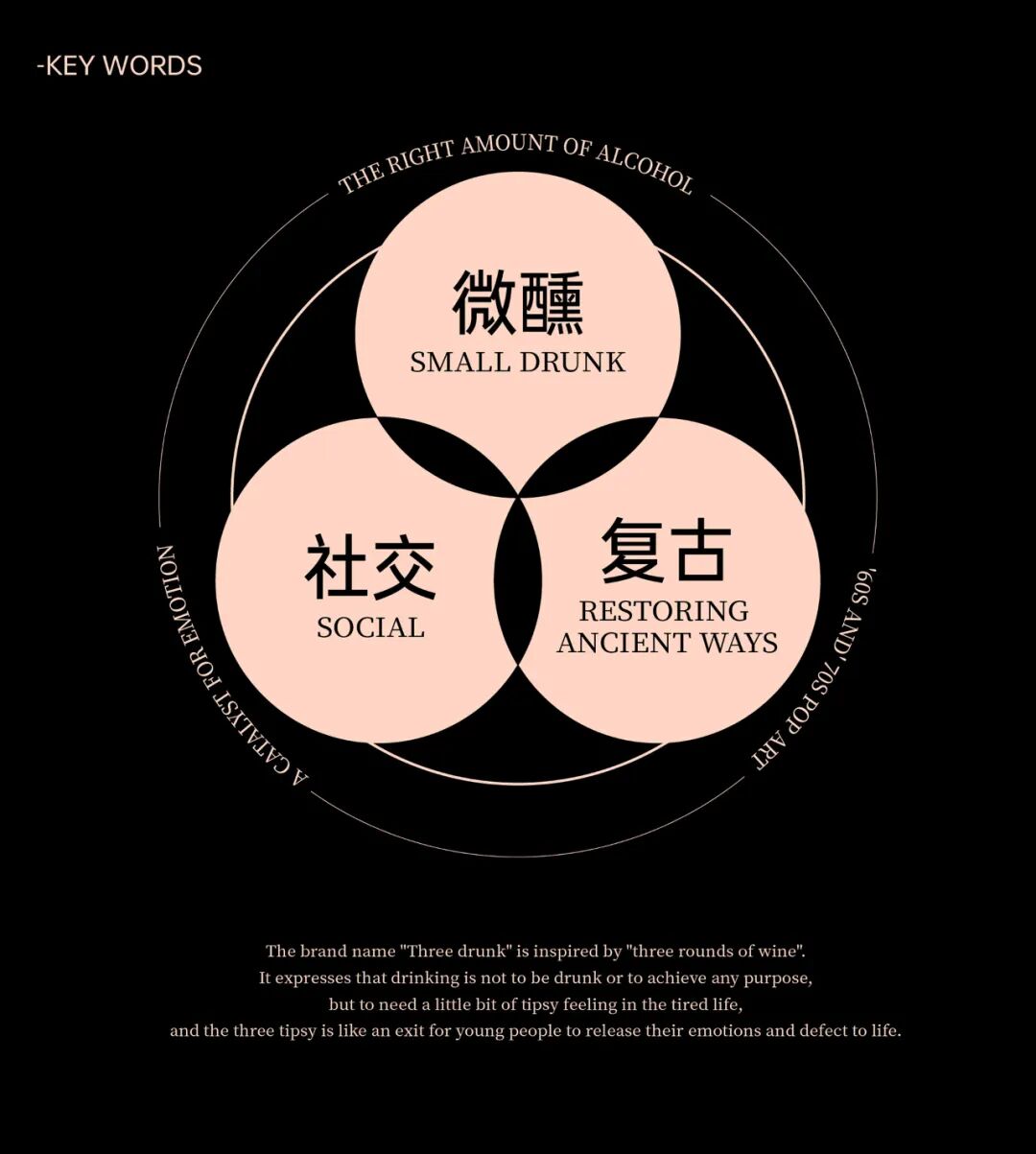 「三醺酒市」是一家多维度体验酒吧,致力于为饮酒爱好者和夜生活人群提供一个社交及饮酒综合体验空间。品牌名“三醺酒市”灵感来源于“酒过三巡”。表达了喝酒并非要酩酊大醉或是要达成何总目的,而是需要疲惫生活中的一点点微醺感,三醺也就像是年轻人情绪释放,叛逃生活的一个出口;「三醺过后忘记坏情绪」、「三醺过后忘记渣男」、「三醺过后交到新朋友」…