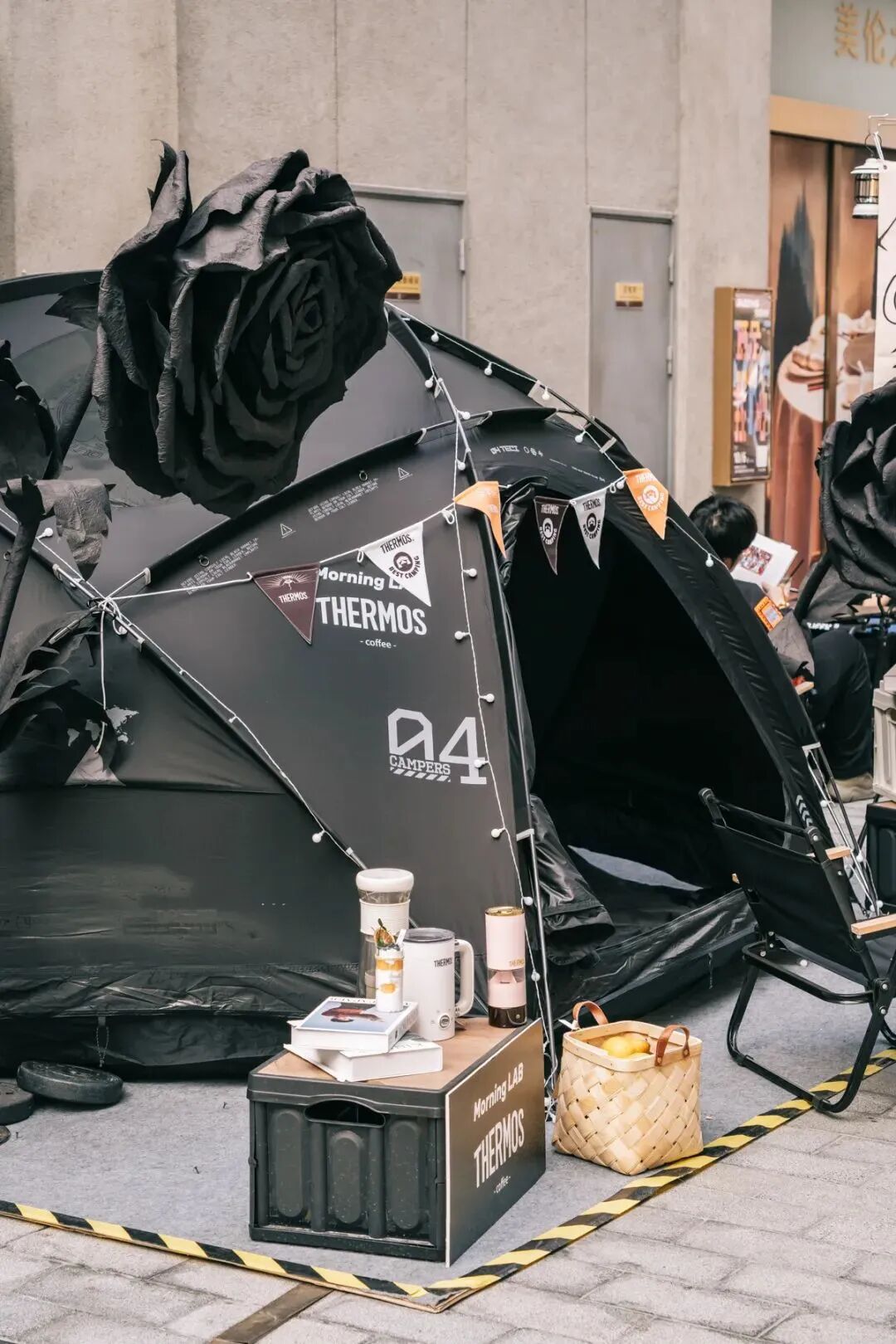Morning LAB是城市露营综合体验空间,倡导新型精致的生活方式,以露营场景为容器,承载不同类型的活动内容,以最潮流的方式探索都市空间与自然。这家位于外滩中央的咖啡店从装修到陈列以黑色为主色调,户外的黑色帐篷增添了高级感和神秘气息,体现了Morning LAB孵化城市最前沿的潮流态度。