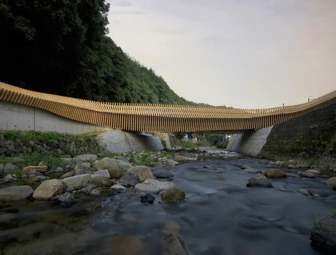 通过将日本引以为豪的木工技术与现代计算机技术相结合,久杉桥呈现出一种与传统土木结构截然不同的柔和且充满人情味的表达。