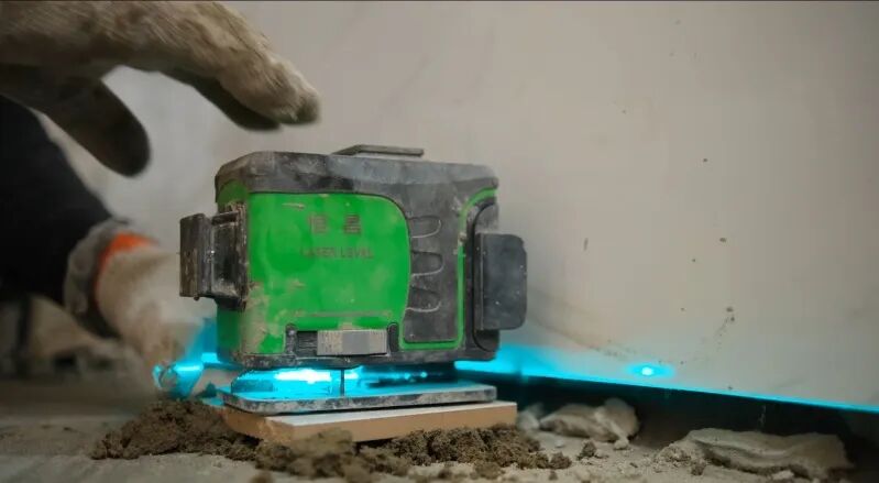根据地面水平度确定一个最佳完成面高度,并在墙面上标识出来,墙面砖还需要在相邻侧墙面弹出完成面控制线,兼作垂直度参照。