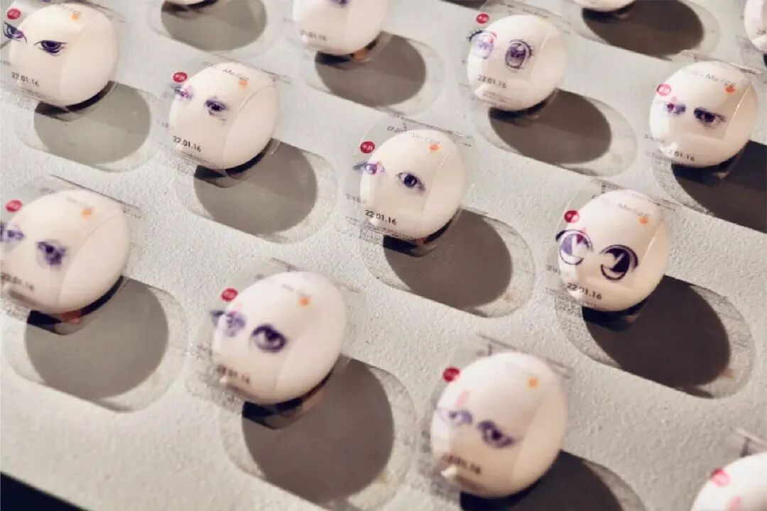 另一方面,加上眼睛似乎会赋予鸡蛋生命,和它对视的时候你会觉得可爱,不舍得吃,似乎能感同身受。为了让不同的人都能产生共鸣,男女老幼各式各样的眼睛都有,在这堆鸡蛋中,有没有和你长着同样眼睛的呢?