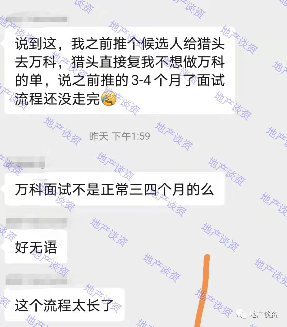 以这位项目总为代表的操作,在万科面试里面并不少见,可谓是得罪了不少求职者。比如给谈资君吐槽的猎头,也有反馈类似的问题,如下图: