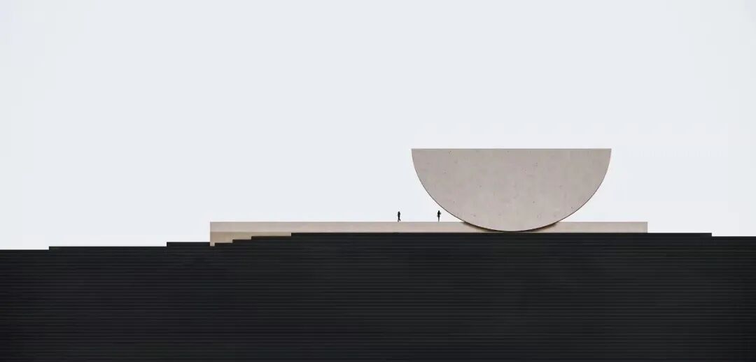 白色混凝土的半月形礼堂是酒店设计完成后的突发奇想,一个简练的半月挂在山头,给人无限浪漫的想象和感召。