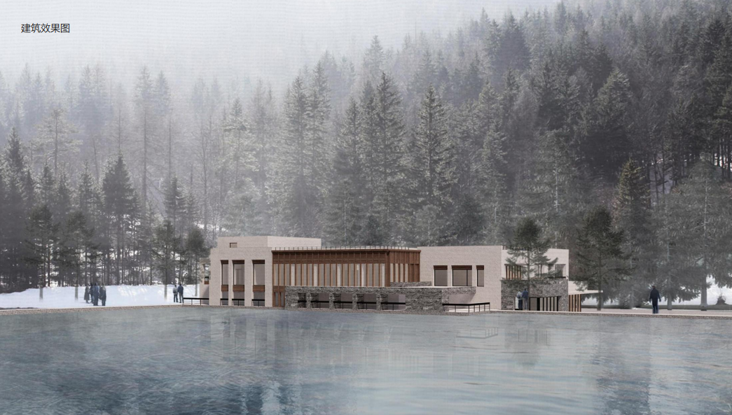 主楼各个功能区环抱分布,泳池延伸而出,直面雪宝顶,如同天人合一之境。池水源引自九寨药泉的天然温泉水,为旅人带来温暖疗愈。
