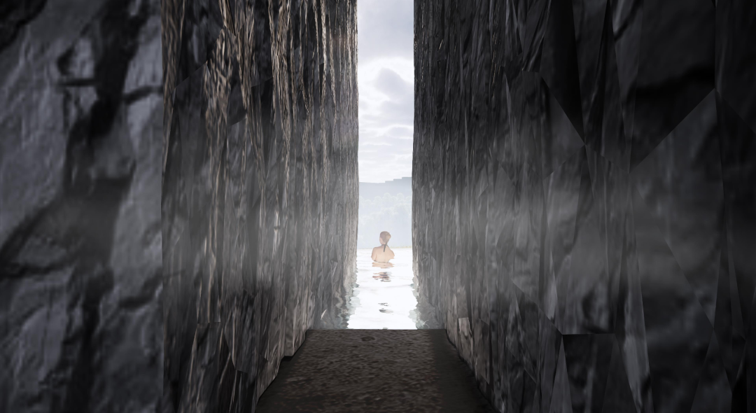 泳池则是酒店设计中最惊艳之处,光线由暗转明,就像是进入了一条能到达“桃花源”的路。崖底还有一间酒吧,坐在悬崖深处饮酒,头上悬有万吨巨石,怎么能不震撼?