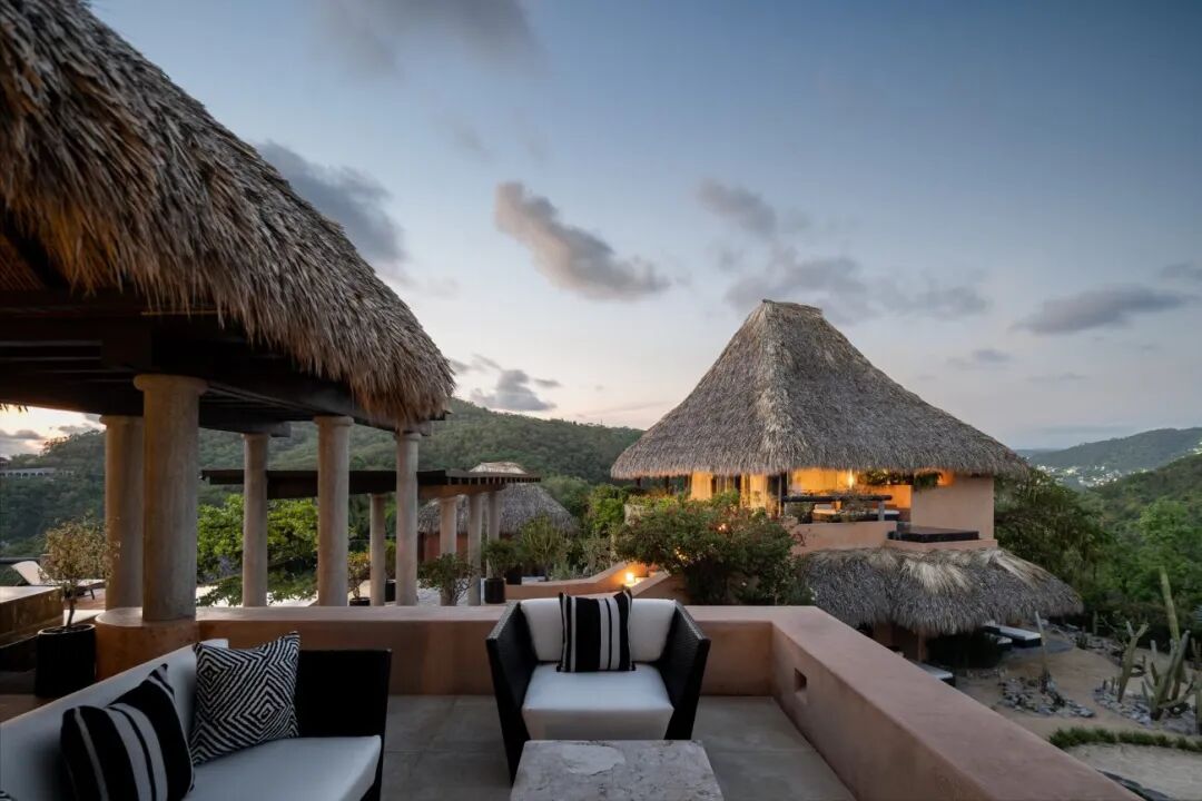 Tulum's house is located at the top of one of the Zihuatanejo mountains, hidden in the natural landscape. The project is composed of three-volume bungalow buildings, surrounded by a swimming pool, which is understood as the guiding element and distributor of the house, in the form of a central courtyard.