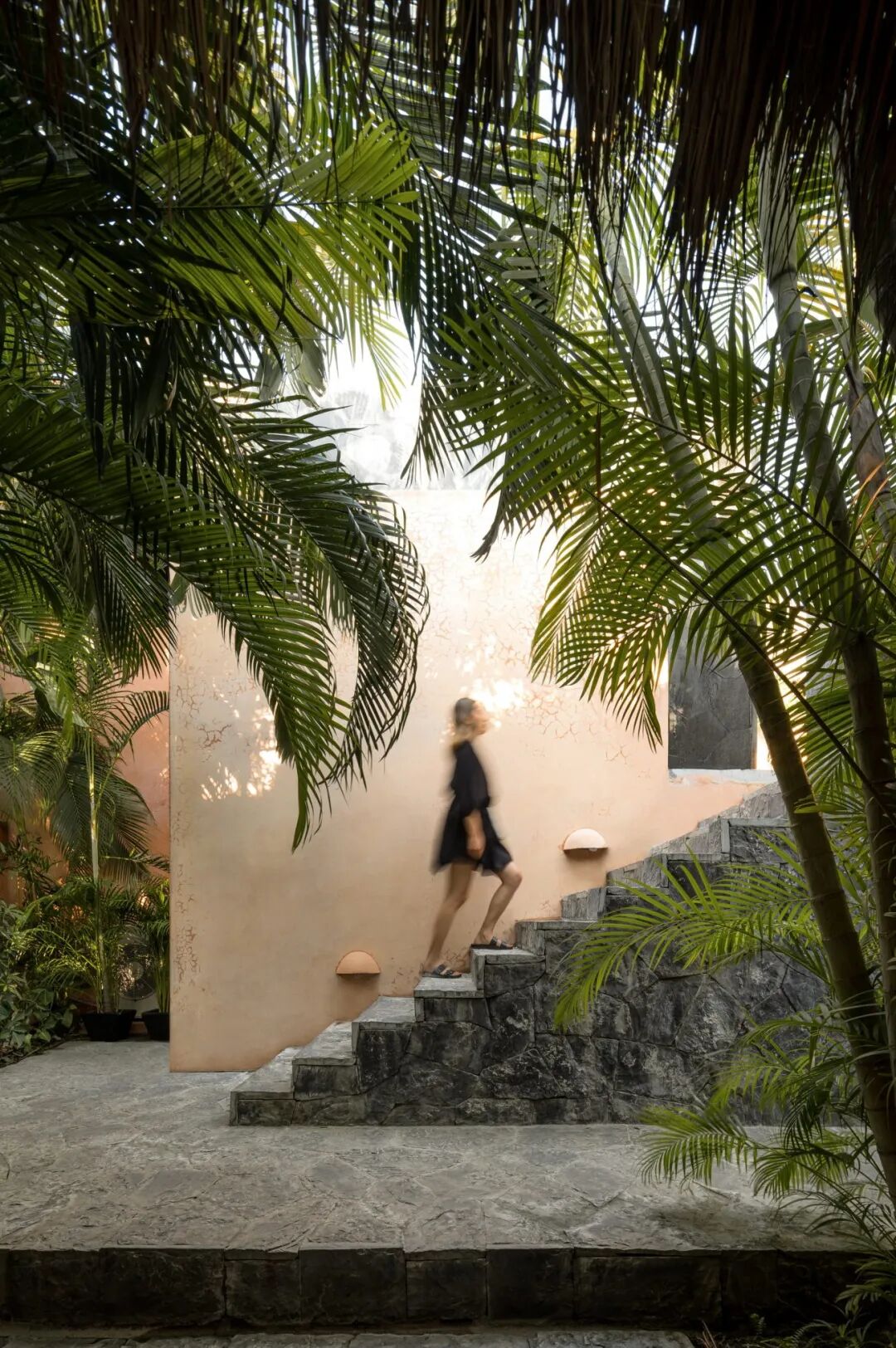 该项目理解尊重自然环境的重要性,并寻求将住户与当地生活方式联系起来,包括石结构和木结构的棕榈屋顶。通过这种方式,该住宅反对普遍性和国际主义建筑的理念,以强调基于地域材料的建筑优势。同样,室内和室外的调色板也是以暖色为基础的,使其感觉更加舒适和亲切。