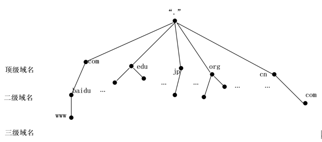 域名系统DNS是类似于一个树状数据结构,树中的每个节点实质都是负责某个特定区域的一台服务器,通过这些节点,对整个域名空间进行划分,成为一个层次结构,这种结构类似与UNIX文件系统的层次结构,根的名字“.”来表示,并称之为根域名(root domain)根域的下一级是顶级域名,顶级域名又分为两种划分方法,地理域和通用域,地理域则是为了世界上每个国家或地区等设置的,如中国是cn,日本jp,美国us,台湾tw。等等。通用域则是通过不同的机构类别设置的顶级域名,如org、edu 等等。如下图: